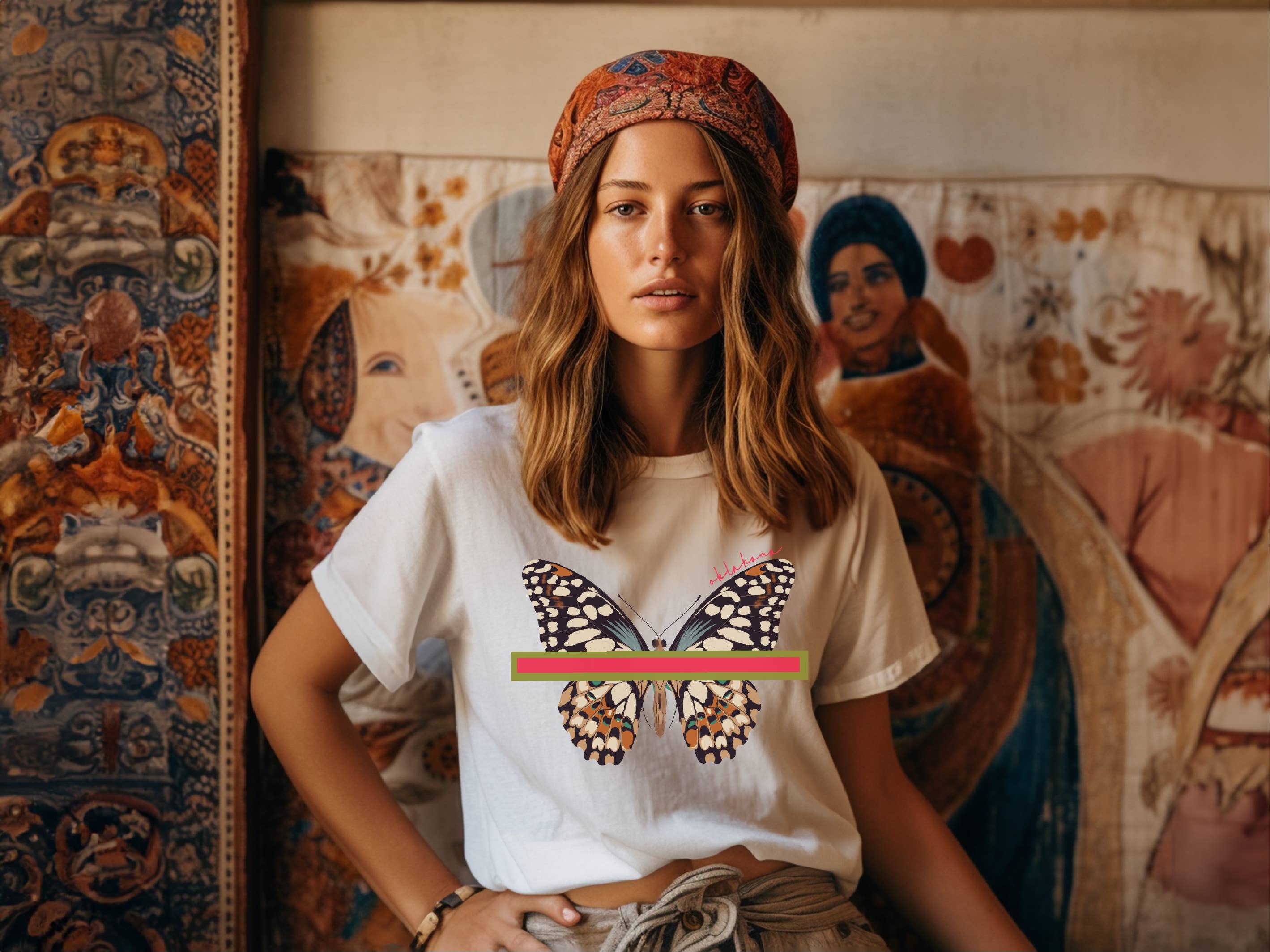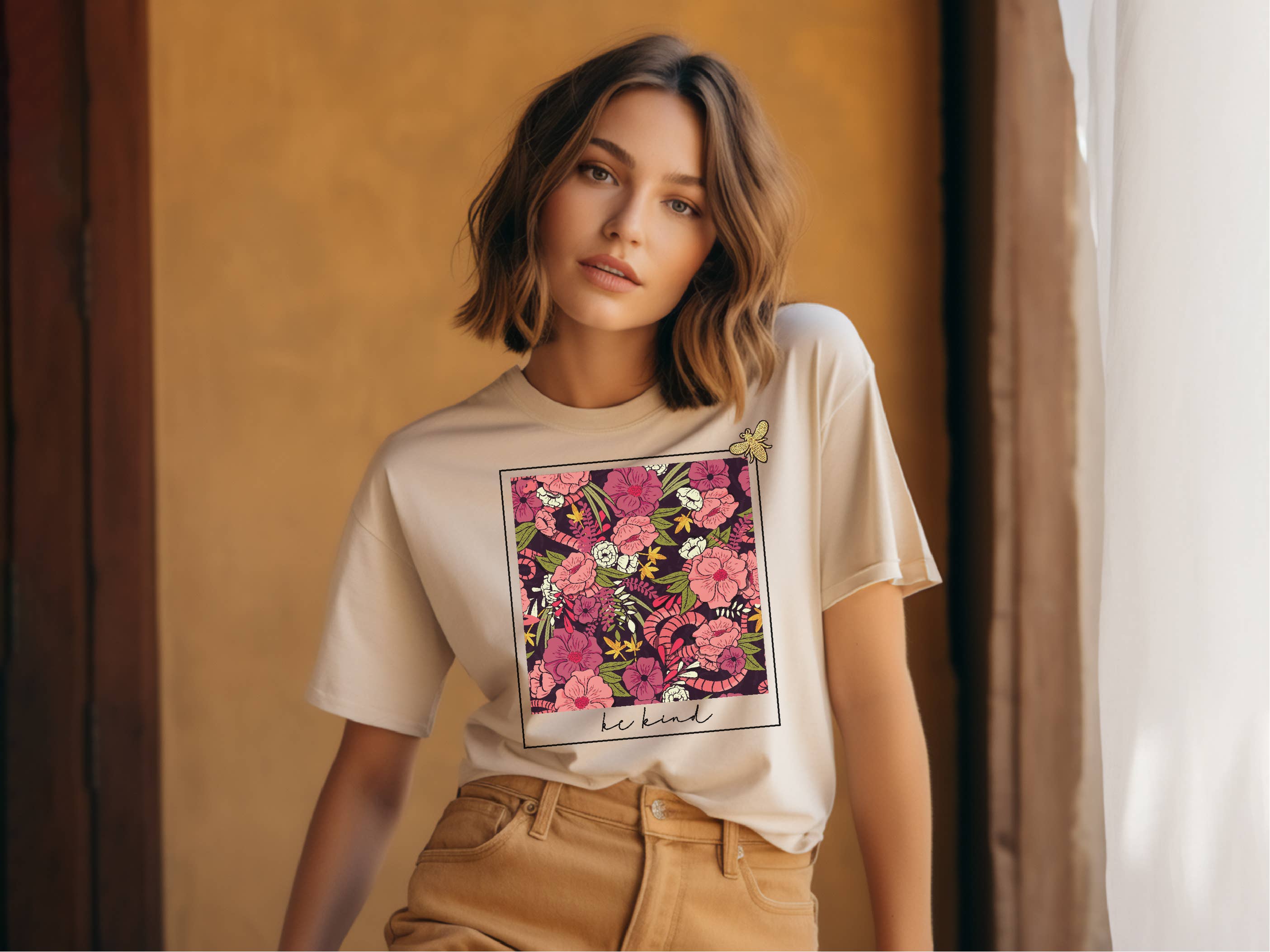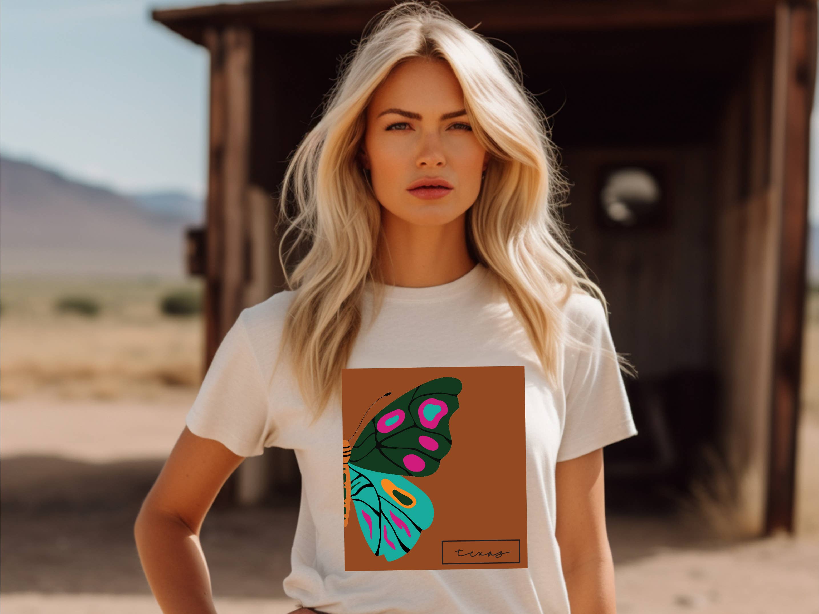 Looking for a t-shirt that your customers are going to love to show off their state pride? This unique design features a sophisticated floral design with a modern frame and a large butterfly with the state featured at the bottom! Under the design, the phrase Keep the Butterfly In You is displayed. The signature Eye Candy gold embroidered bee is pinned to the t-shirt which can be worn with the design or placed on any item! Find your state in the dropdown menu, and let us know if you need a custom state!