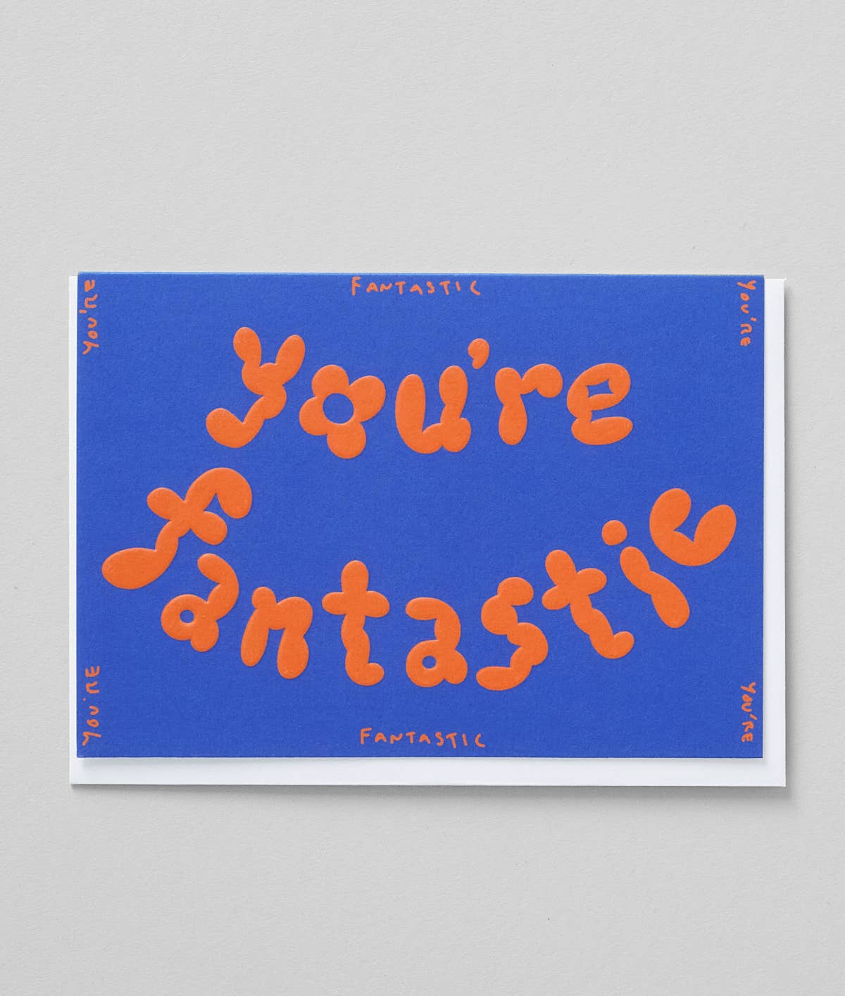 A type-based birthday card designed in blue and white. - Artist: Micke Lindebergh for Wrap - Dimensions: 10.9cm x 15.5cm (folded) / 4.3" x 6.1" inches - Comes packed with a white envelope in a clear biodegradable cello bag - Blank inside - Printed in the UK on responsibly sourced paper, using vegetable-based inks