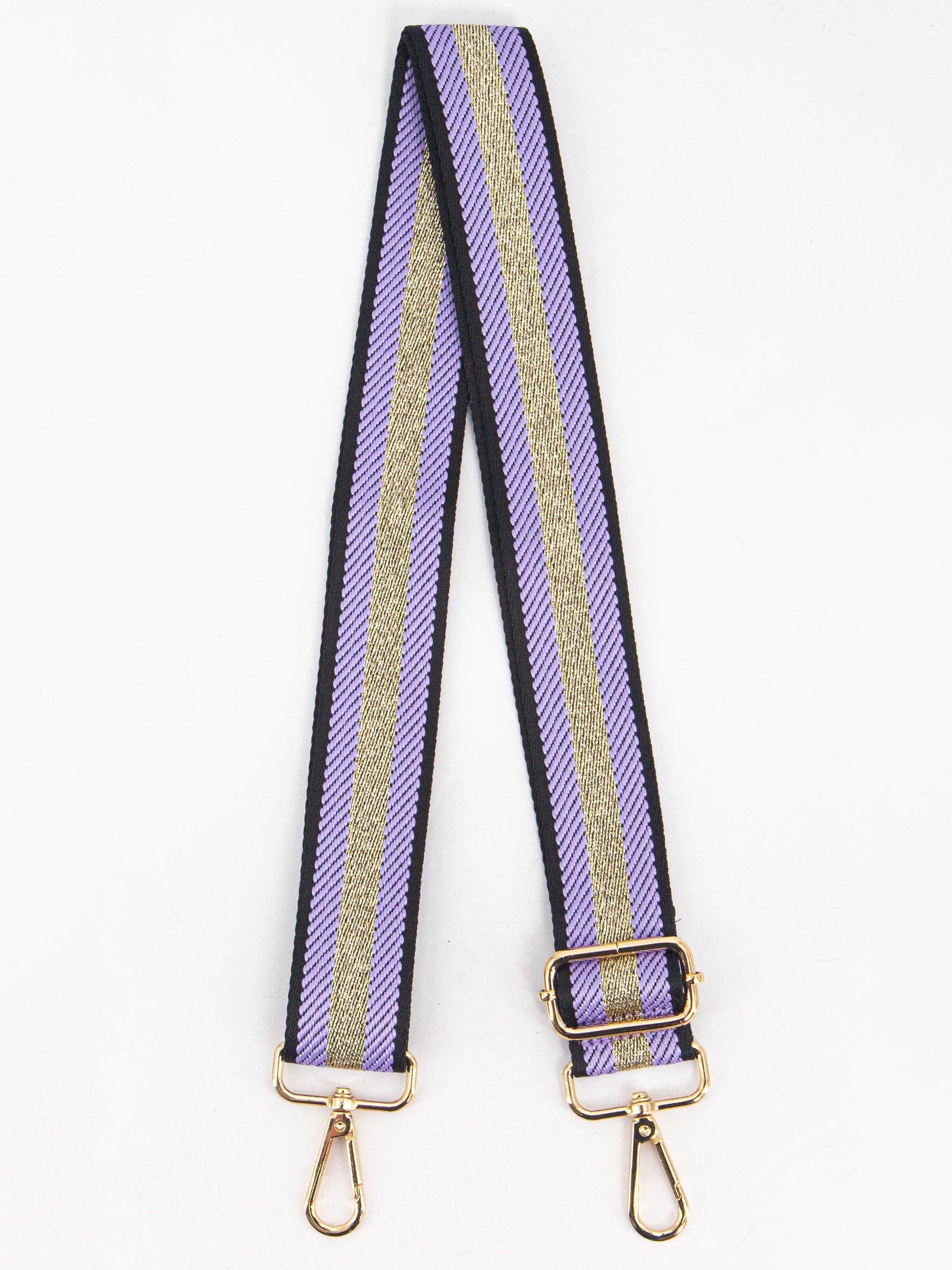 Change the look of any handbag! These stylish "guitar straps" add color and fashion to your bag, big or small. Adjustable length from 29 inches for a belt bag, up to 52 inches at its longest length for a crossbody strap. Features Include: Strap is 2" wide Adjustable Strap, 29” – 52” Gold Hardware Woven Nylon Material Strap only, handbag not included