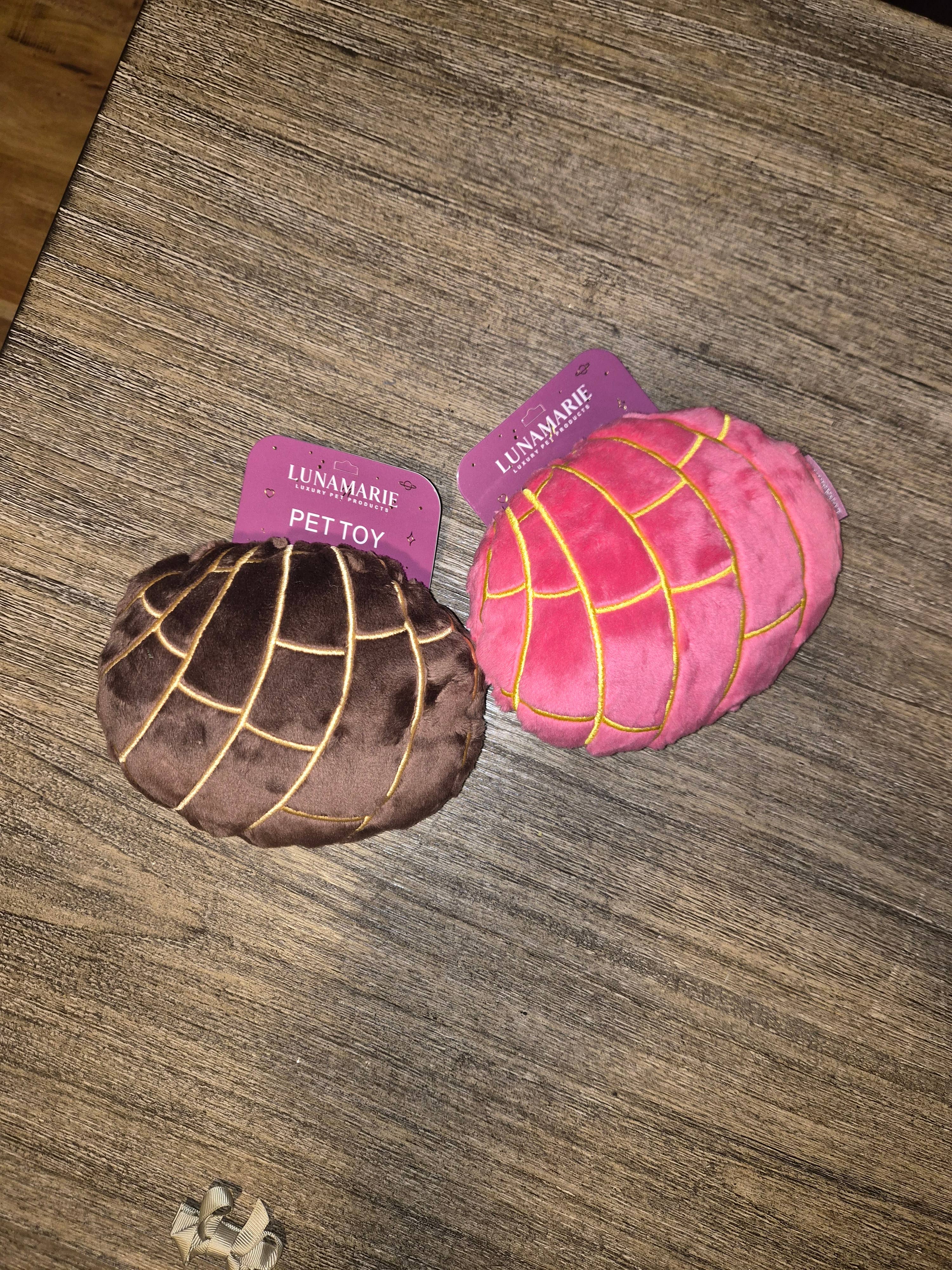 This 6-inch round plush toy is shaped like a traditional Mexican bread and even has a squeaker inside for added fun! Perfect for any doggie who loves sweet treats!