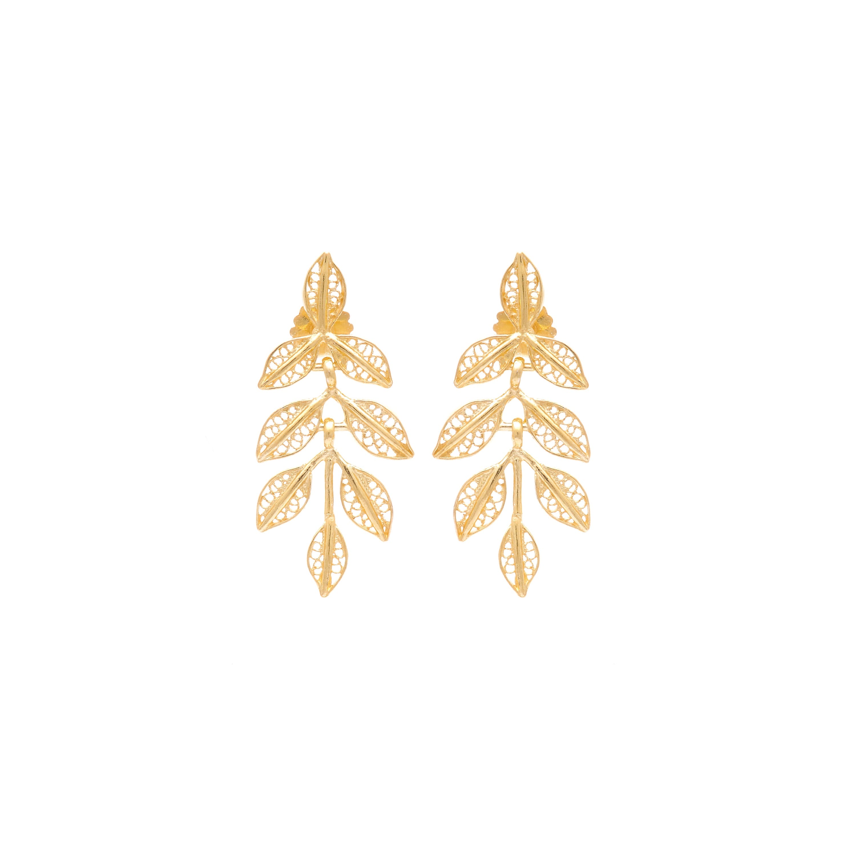 Silver Princess earrings in filigree, part of The Classics Collection. The Princess earrings are descendants of the Queen earrings and represent fertility and motherhood. The triangular shape is an expression of femininity, and the central pendant symbolizes the connection between mother and child. Gold plated silver 925‰ earrings with 4,0cm and 4,1gr. Handmade in Portugal.