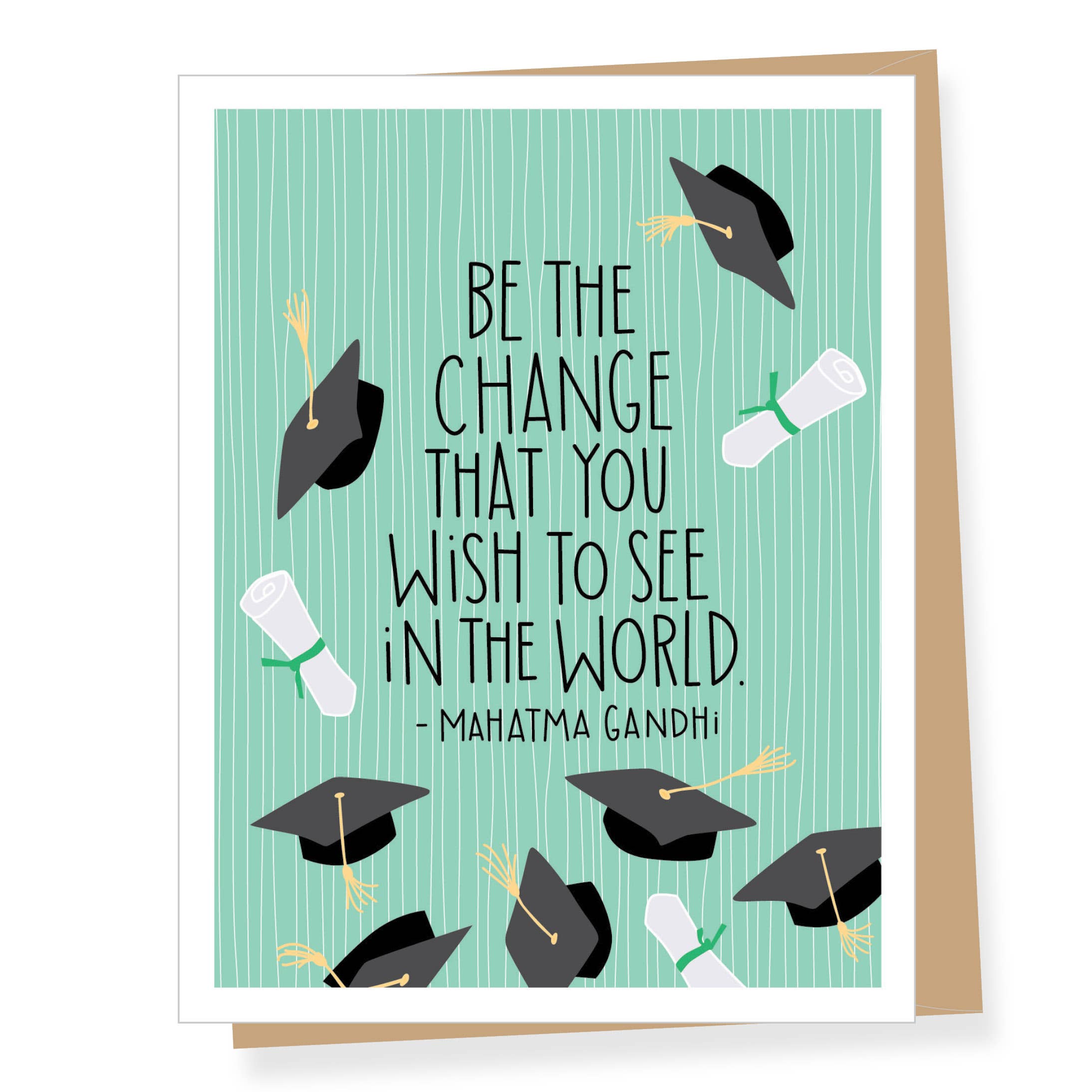 A2 Size Greeting Cards (4.25 x 5.5 inches folded). Inside greeting: "CONGRATULATIONS GRADUATE! SO PROUD OF YOU!" Printed on premium recycled paper. Paired with recycled brown kraft envelopes. Packaged in cello.