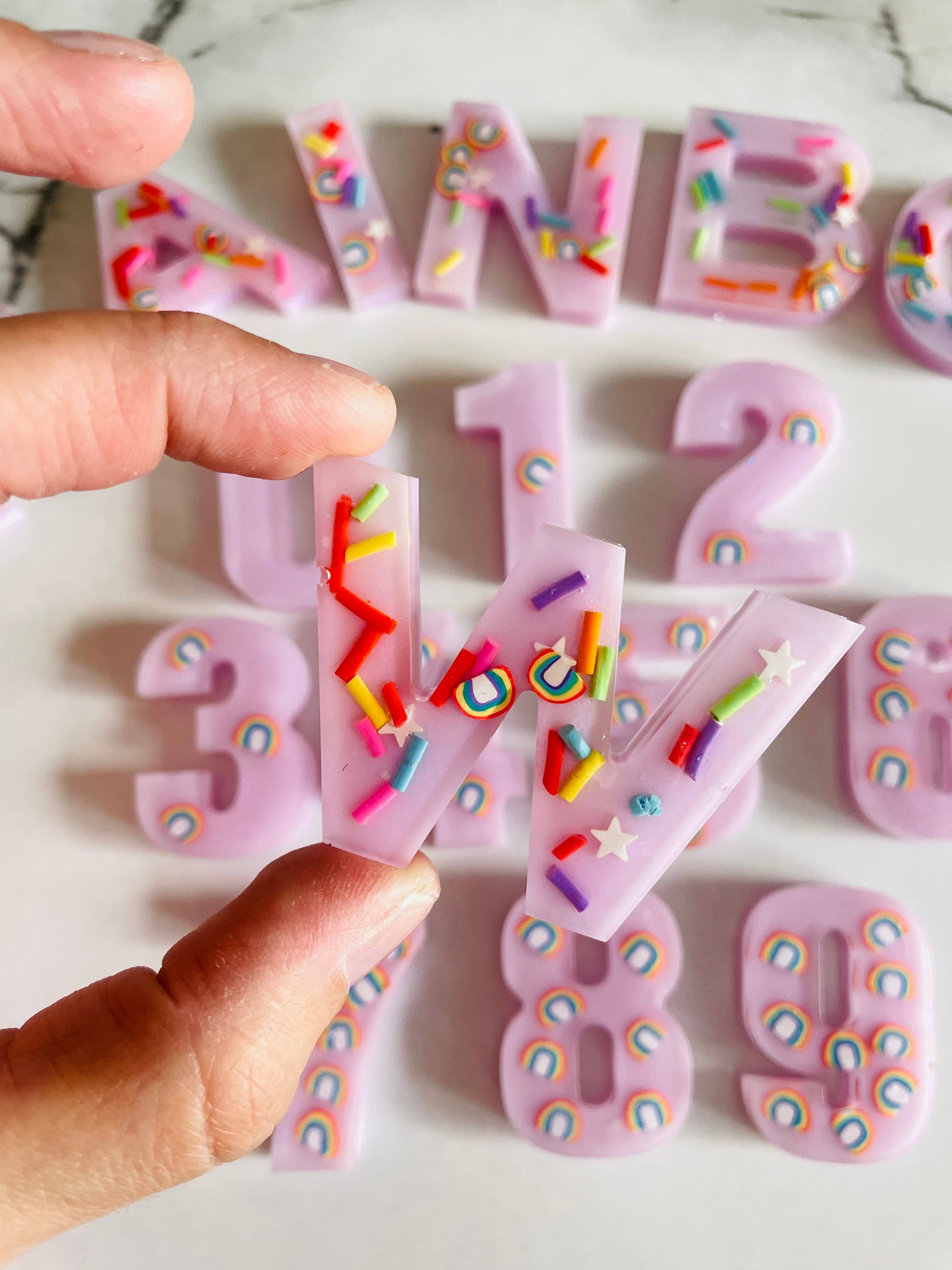 RAINBOW RESIN SETS - letters and numbers (choose what you want below). ROYGBP colors with corresponding big glitter pieces! So sparkly and fun! Want a different color/design? We love to do custom orders - send an email.