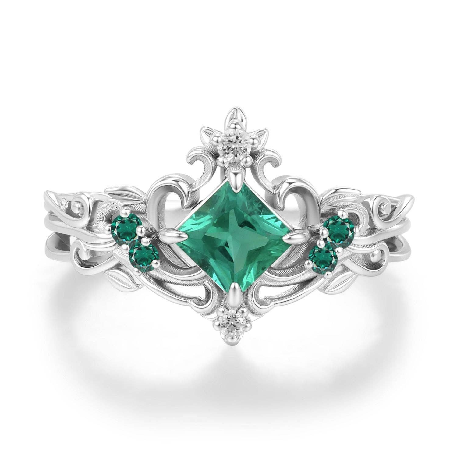 SKU: 127-SMA10K-4 Colour: Green and White Is set: Set Occasion: Everyday and Wedding & engagement Stone type: Agate and Topaz Theme: Nature Product language: English Curation Dimensions: Center Stone: 5x10 mm marquise Moss Agate Accent Stone: 2.5x3.5 mm pear White Topaz 1.1-2 mm round White Topaz Band width: 1.5 mm Weight: 45.36 g (1.6 oz) Production: Ethically sourced