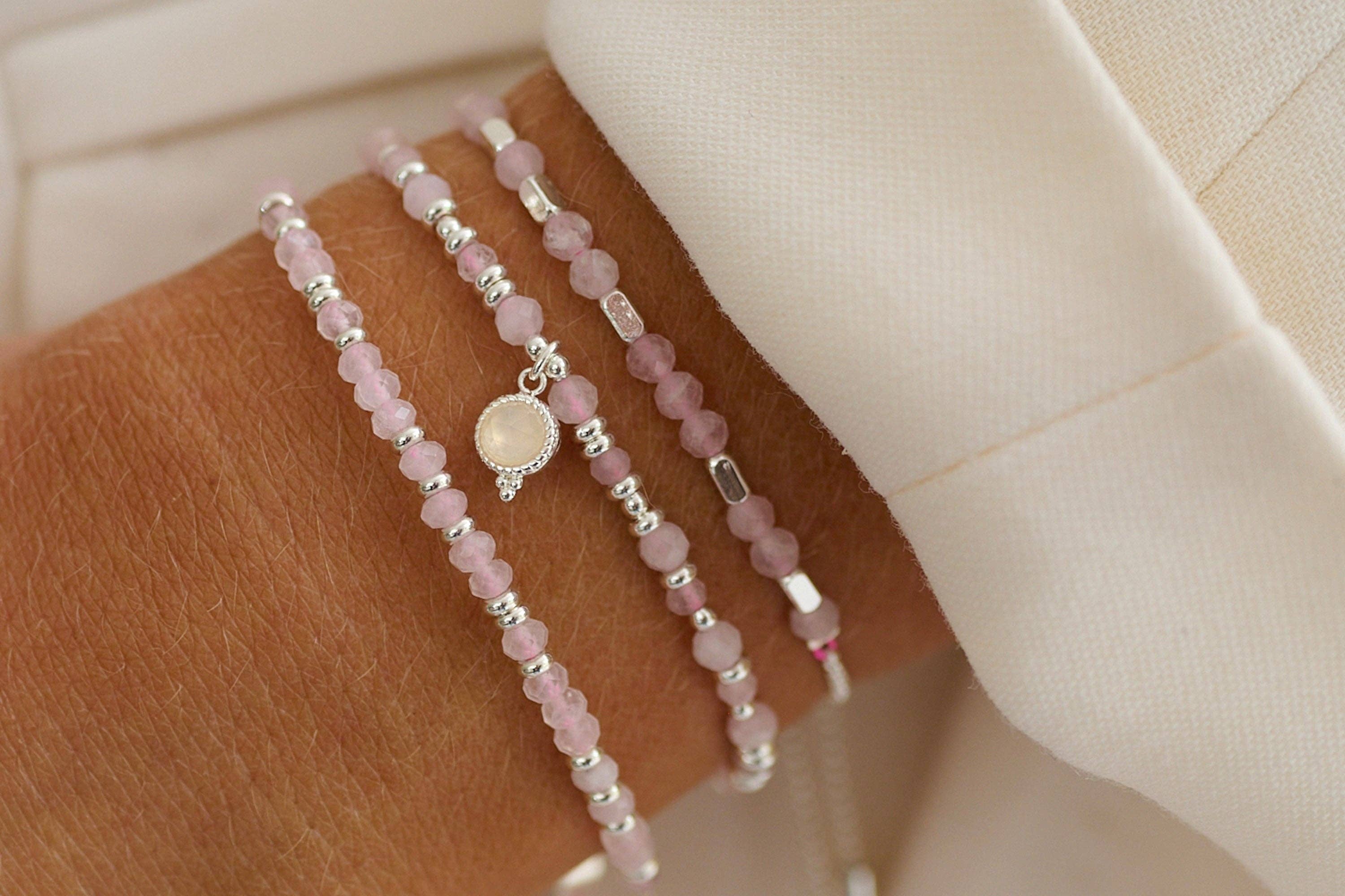 A delicate yet powerful design featuring natural facet-cut, Premium Grade amethyst nuggets accented by clear quartz beads. The handmade fused silver toggle clasp offers a secure and elegant finish, perfect for those who prefer subtle yet meaningful jewelry. Key Features: • 4 pieces of Premium Grade facet-cut natural amethyst nuggets (7-9mm, rich color and high clarity) • Smooth, clear quartz beads (enhance light reflection). • Custom-fit sizing (measured to your wrist — see sizing guide). • One-hand operable toggle clasp (toggle and bar slide effortlessly). • Artisan-fused Argentium® silver toggle (94% pure silver, highly tarnish-resistant). • Handcrafted in California Gemstone Benefits: ✦ Amethyst – Promotes emotional balance, stress relief, and enhanced intuition. ✦ Clear Quartz – Acts as an energy amplifier and mental clarifier.