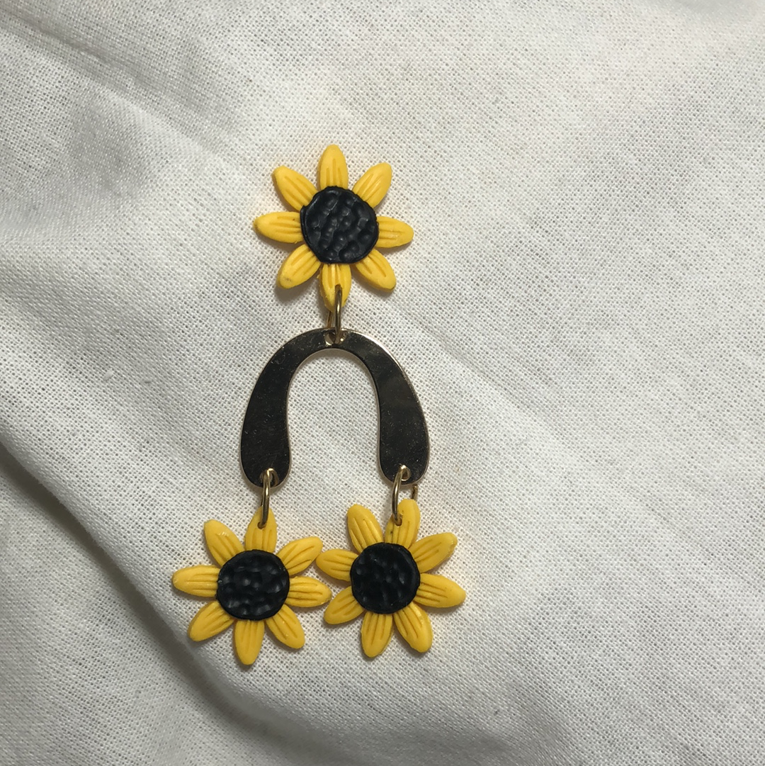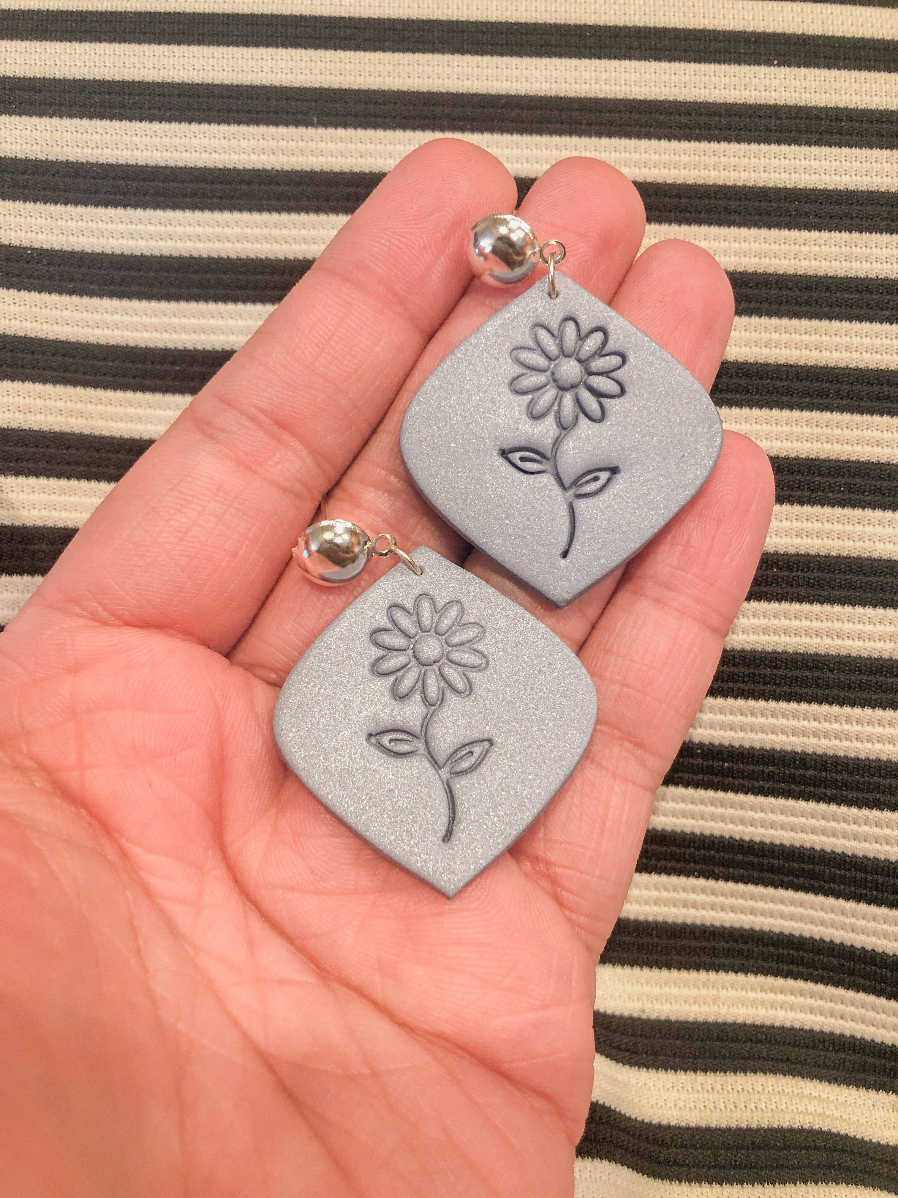 Moody blue color with a sunflower imprint. Silver plated ball posts. Lightweight polymerclay earrings perfect for any occasion.