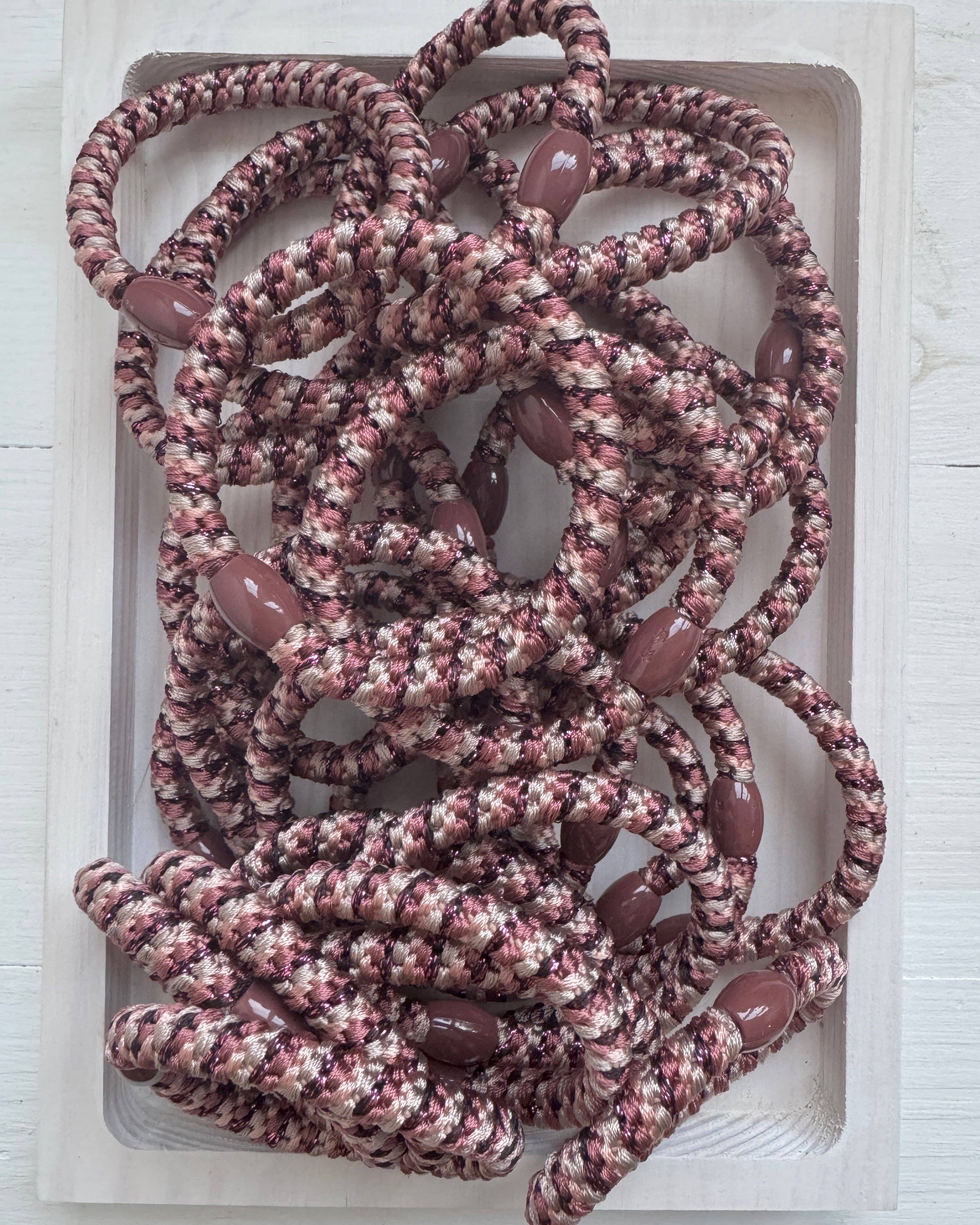 This assortment of nylon hair ties features an eye-catching spectrum of colors that cater to every customer’s preference. From sunny yellows to deep purples, these durable yet gentle hair ties are designed for all-day comfort without sacrificing style. Perfect for on-the-go adjustments or creating trendy hairstyles, a must-have accessory that combines functionality with fashion. Details * 20 colorful hair ties * 1 of each color * Nylon material * Imported Whether it's a NYE party accessory, Galentine's day gift, or a present for your sweetie, Taylor Elliott has what you need to make winter season celebrations memorable!
