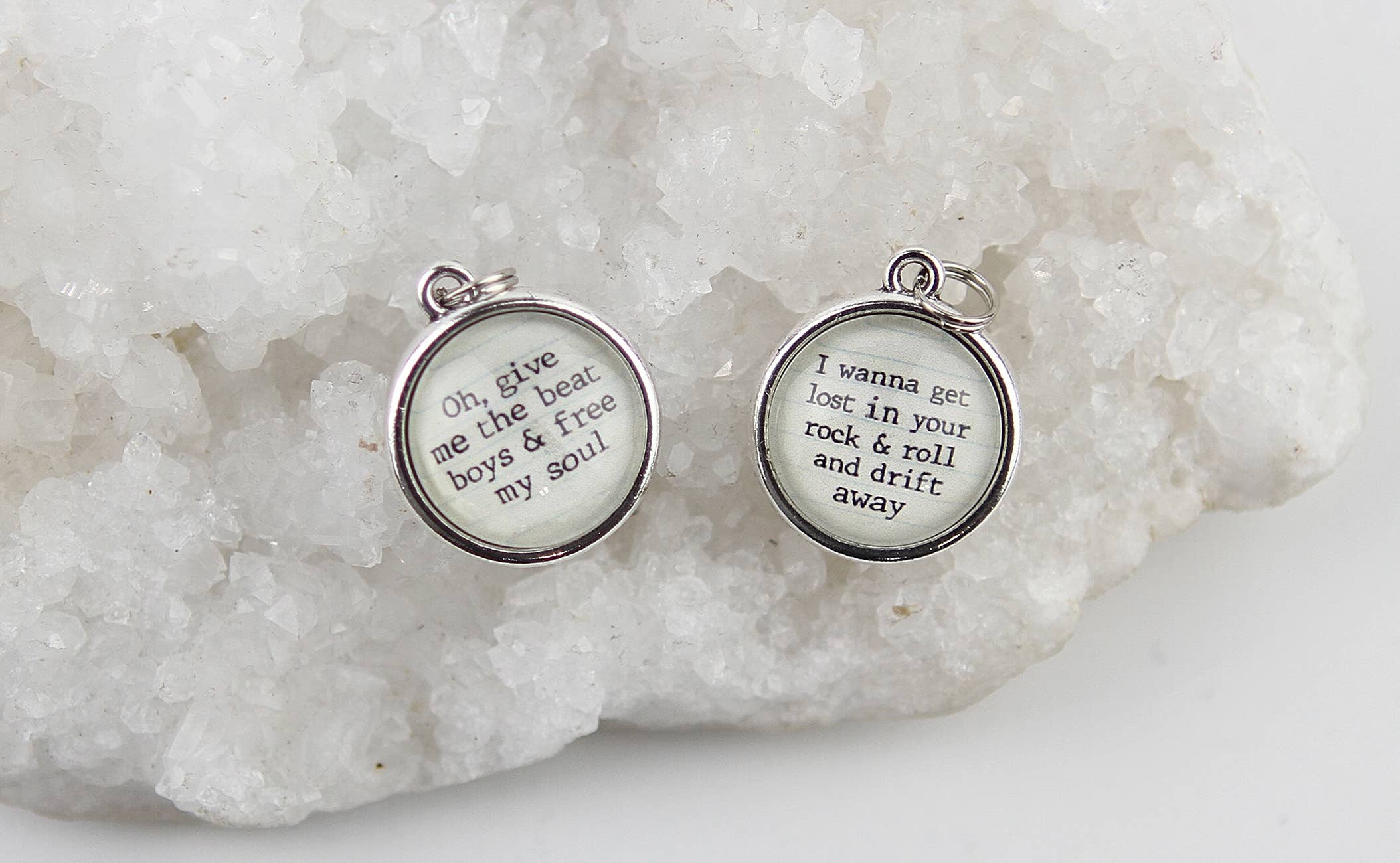Watch your customers connect with XOXO charms and see your sales grow! Customers love the memories that our charms bring back for them. The glass two-sided bubble charm is shown set in a silver-plated setting. Dimensions: Bubble Charm: 3/4" diameter Materials: silver plated brass, glass, paper Each charm is handmade in our Minnesota studio Please note: This listing is for one charm only. The photo shows both the front and back side of the charm.
