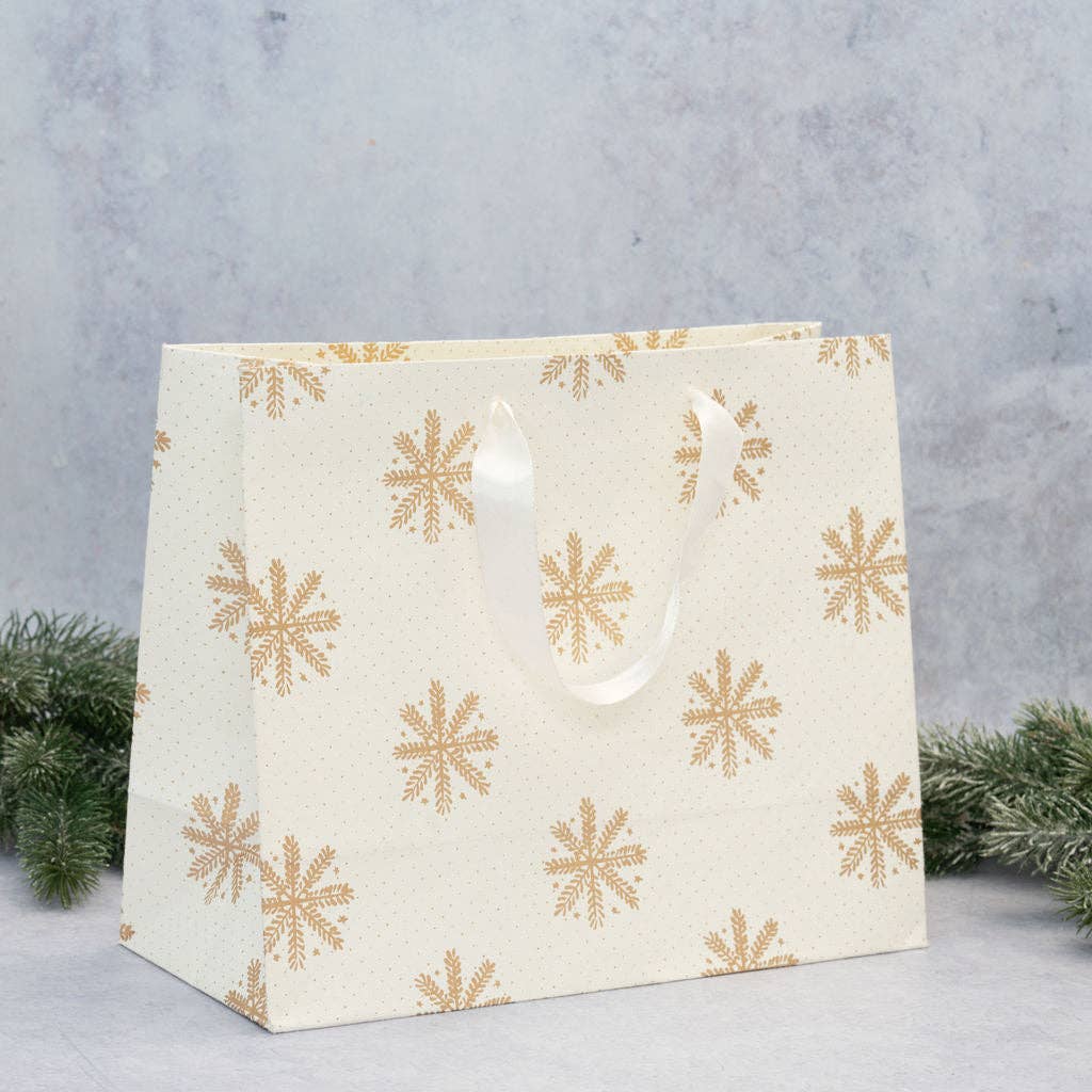 Experience sheer luxury with our Medium Gift Bag, measuring 27 x 33 x 14cm. The luxurious ribbon handles and premium 200gsm weight make this bag a truly sophisticated option. Meticulously crafted from 100% recycled cotton sourced from the prestigious Indian textile industry, our hand-screened wrapping paper exudes exclusivity and refinement. Elevate your gift to new levels of elegance with our vibrant color palette and opulent metallic accents, paying homage to the timeless art of artisanal craftsmanship.