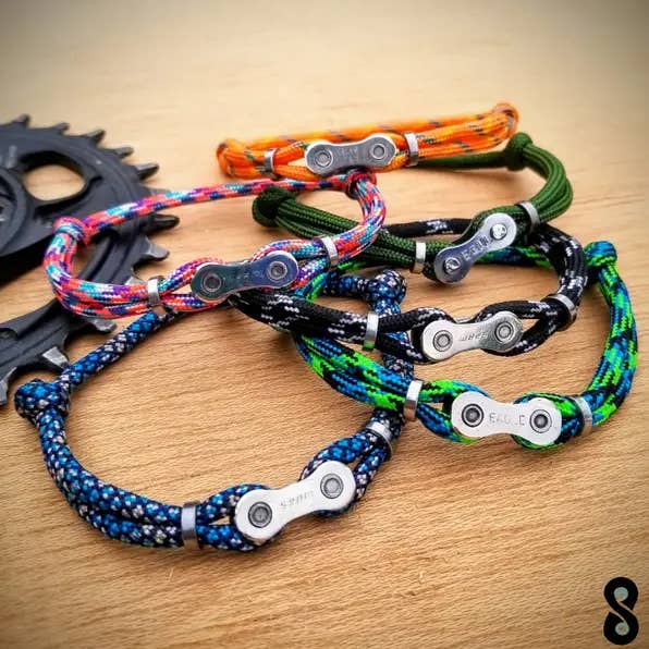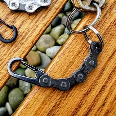 Check out these Laser Engraved Wooden Bike Themed Keychains. Made from reclaimed, upcycled bicycle chains. You'll get an assortment of designs all of which will be bicycle themed. If you have preferences or specific designs that you like/dislike, contact me and I may be able to accommodate. Approximately 1.6" at widest point ________________________________________________________________ Tinkering Cyclist Info: All used bike parts are reclaimed from my own family's bikes, or local bike shop's scrap bins. They are given a new purpose in life and upcycled into new, beautiful, functional pieces. These parts are degreased, cleaned, and sometimes polished to achieve the desired finish. They may contain flaws, defects, rust or grease remnants, but that's the nature of the beast. You can also expect reused packaging, to decrease costs and recycle materials. Follow on Instagram For Latest & Greatest: @tinkeringcyclist