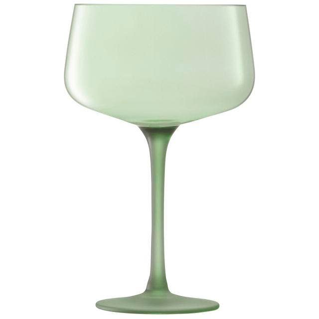A set of two mouth-blown flutes with cylindrical bowls and an angular, geometric profile. Mouth-blown glass Cylindrical bowls with flat bases Hand-drawn stems Dimensions Capacity: 150ml, Height: 26cm, Width: 4cm