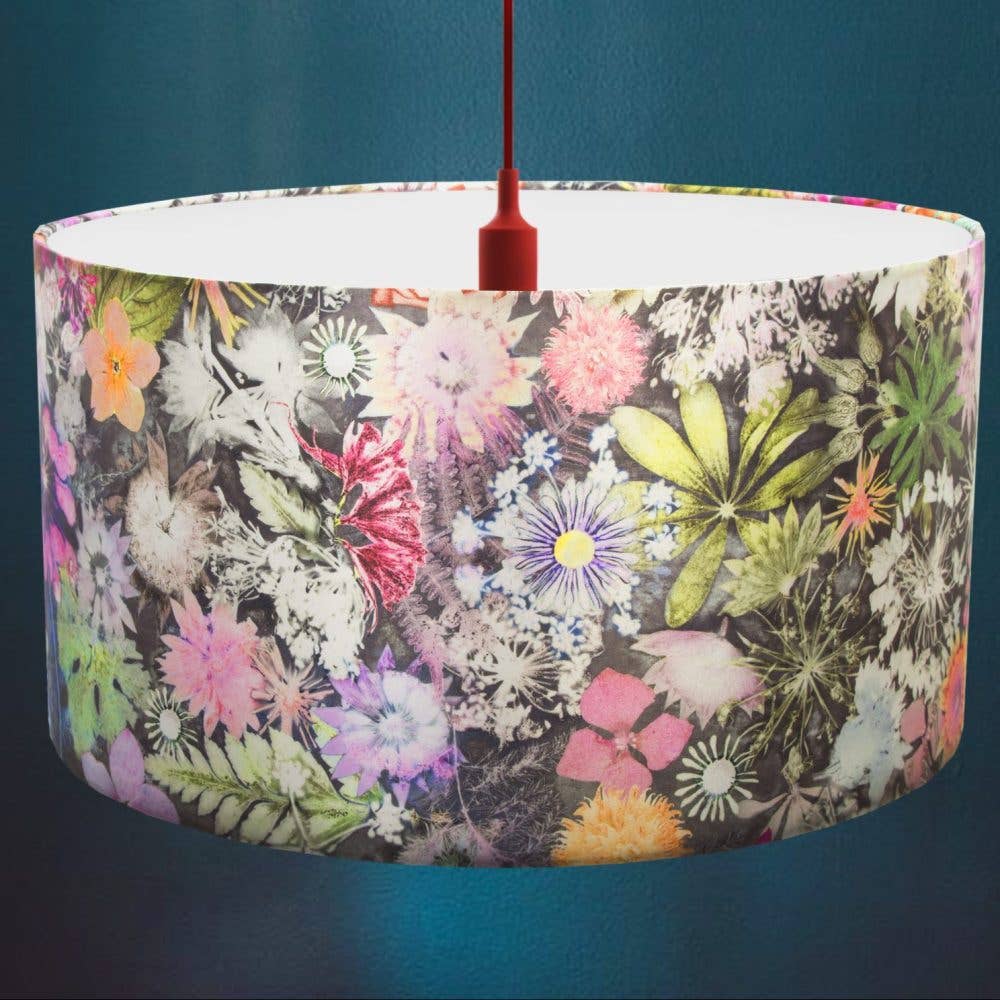 A beautiful vibrant floor lamp in a striking floral design with pops of blue and purple throughout the design. Our floor lamps are a highly unique and are perfect for creating mood lighting and atmosphere in your home, featuring an original composition by artist Gillian Arnold. Dimensions Full height measures 1 meter high with a diameter of 20cm Medium height measures 58cm high with a diameter of 20cm Requires screw in (E27) energy saving light bulb. Printed design is 100% polyester duchess satin backed on PVC. Made with Glow Wire test certified powder coated steel rings. Features rubber feet to prevent scratching of floor surfaces. Comes complete with 2 meter power cable and standard UK 13 amp plug. About the Cascades Of Colour Design In the heat of the tropics the striking colours of nature emerge on full display. The glorious pinks, crisp whites and deep rich blues are a vivid example of nature at its most exquisite. The Cascades Of Colour design collection is landscape