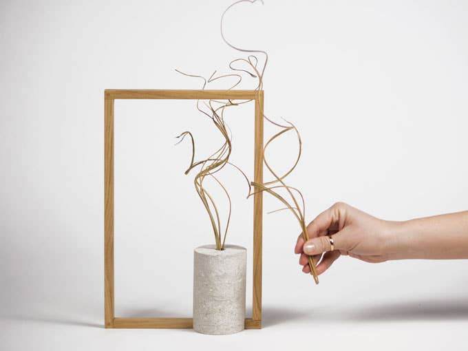 Vase for cut flowers in marble and ceramic that tells of a slow and gradual process of learning of man from nature. Man observes, inspires, imitates and experiments to create what will become innovation, the tradition of an era. The ceramic element is grafted onto the marble base, worked on a manual lathe, and is left partly raw and then developed and flourished in a traditional “Old Savona” decoration by Albissola Marina.