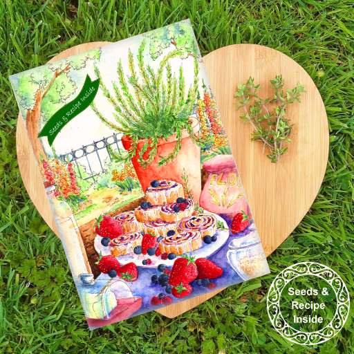 This beautiful card illustrated with Mint Choc Chip ice cream contains a gift of mint seeds to sow and grow to enable the recipient to make the delicious (with no specialist equipment needed) recipe provided the card is handmade, A5 in size, and has been left blank for your own message. The card contains a sealed packet of mint seeds along with growing instructions enclosed in a gift envelope. On the inside left, the recipe for the illustrated ice cream is printed. This aromatic herb, which is also popular with bees, will be a welcome addition to the garden or windowsill. The perfect greeting and gift for people who love nature, gardening, or baking. Seeds count -approx. 100 mint seeds Here at Seeds with Love we are doing everything we can to reduce our impact on the environment. Our cards and their packaging are either recyclable, compostable or biodegradable. We use water-based eco-friendly inks to print onto carbon captured card