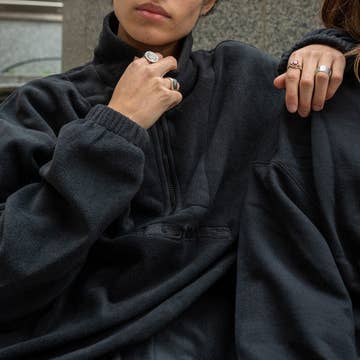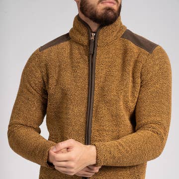 Inspired by outdoor and hiking wear, this warm and cozy Recycled Fleece Jacket is the perfect staple for chilly days, ideal for those who love spending time outdoors. It features zippered hand pockets on the front along with black elastic binding at the stand collar, hem, inside seams, and cuffs. The statement woven label is placed between the colour-block black and brown wavy panels.