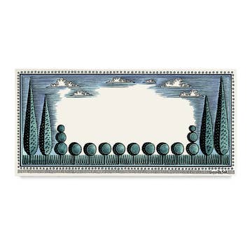 These flat notecards are high quality reproductions of my original hand painted artwork. Single sided they are suitable for use as thank you cards, note cards, gift tags or invitations. Sold in packs of 5 with envelopes, these notelets are printed in the UK on lovely cream card. Printed in the UK Bordered correspondence cards Sold in packs of 5 with envelopes Dimensions: 21 x 10 cms (DL) Materials: Heavyweight 280gsm cream card NB Watermark © Cressida Bell is not part of this design