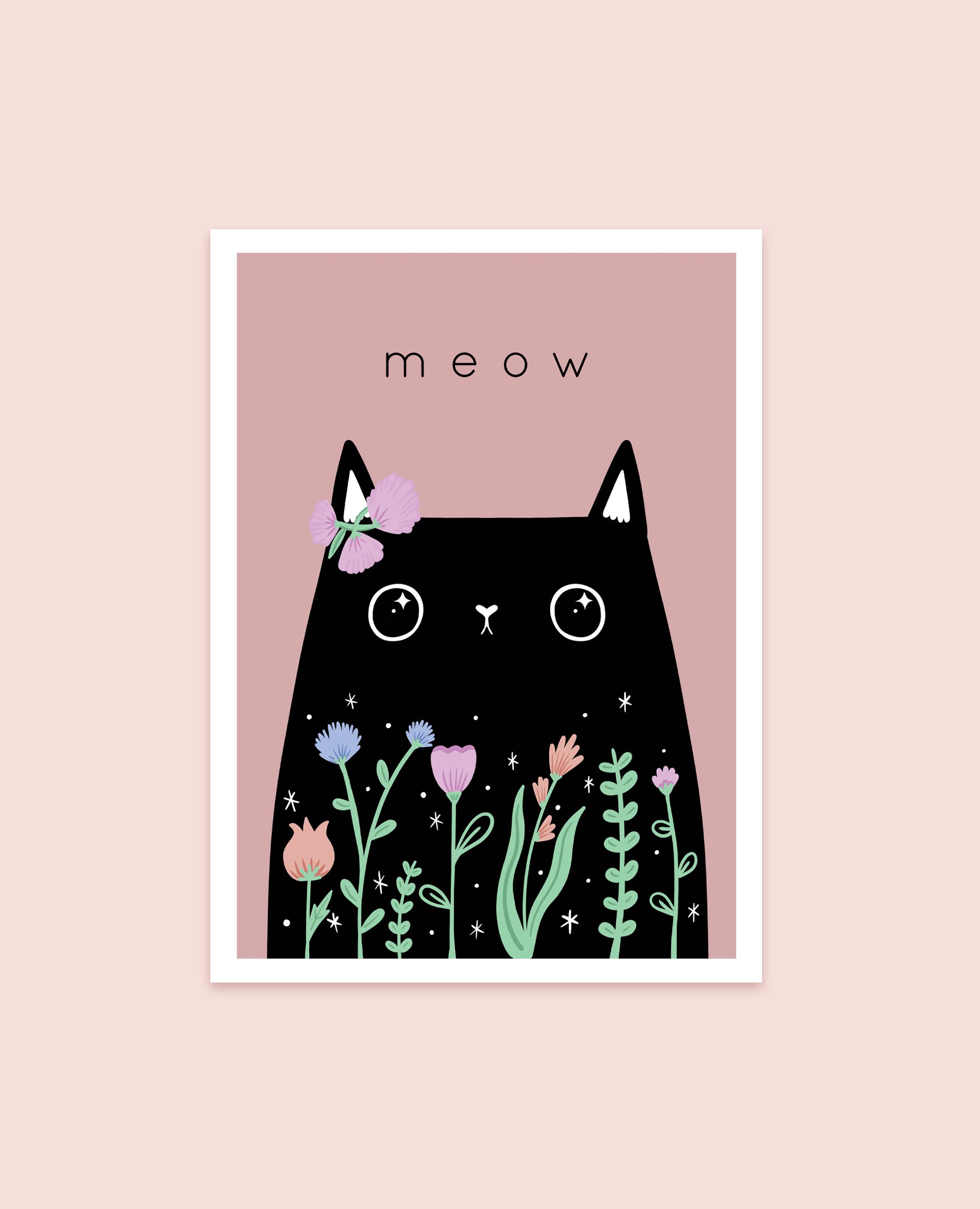 The perfect print for cat lovers, featuring a fancy white cat wearing a floral crown saying mew. Contemporary illustrative style and matching cat prints available with black and calico cats. This print is printed onto matte 230gsm high quality photographic paper using high quality inks. This print is available as A5 or A4 size and comes in biodegradable sleeve (marked as biodegradable) with a recycled cardboard backing and Paper Cat Club sticker. This print is available as A5 or A4 size and comes in biodegradable sleeve (marked as biodegradable) and Paper Cat Club sticker.