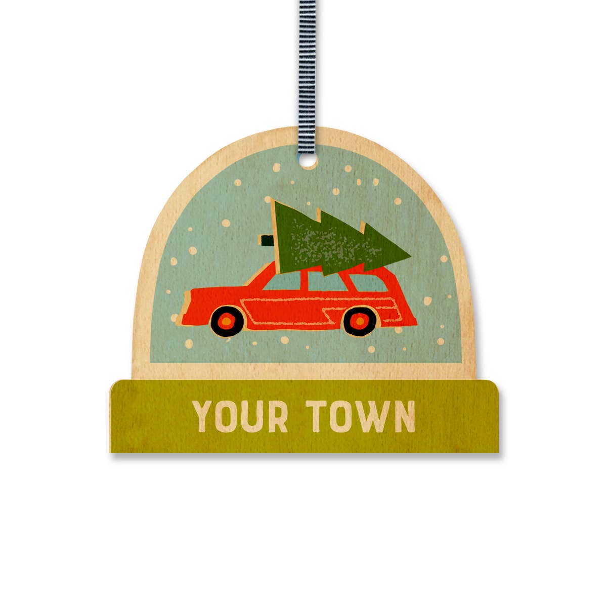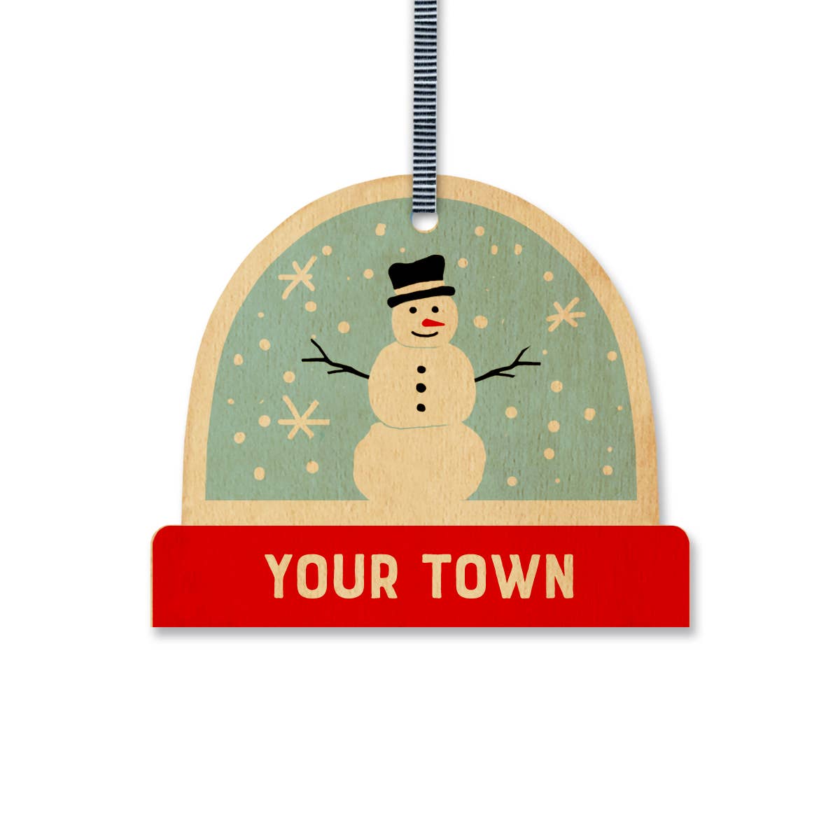 Happy Holidays Snowglobe Local Love Wood Ornament! Personalize this ornament with any city name, state name, neighborhood nickname, zip code or year. • Business names, School names, Sports teams & phrases are not allowed. • Sold in case pack of 12 DIGITAL PROOF will be sent to you via FAIRE MESSAGES for your review. Please keep an eye out for this. This is time sensitive! Please allow 14 - 30 working days production time for this customized item. ------------------------------------------------ • 3" maple die-cut wood ornament in the shape of a snowglobe • Black and White Striped Grosgrain Ribbon • Free personalization • Imported Ornament - Printed & Finished in the USA