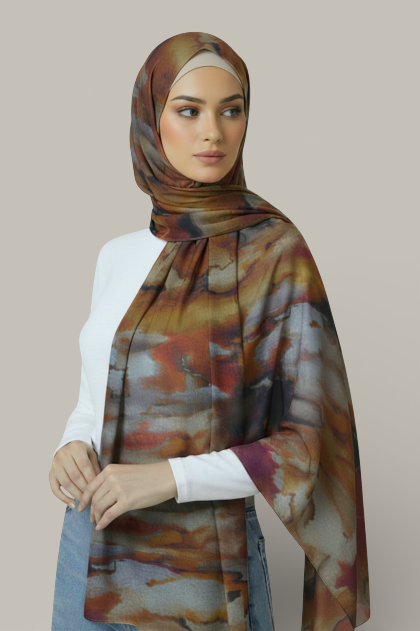 Introducing our exquisite Plain Hijab with a delicate grain structure pattern on one side and luxurious chiffon on the inside. Crafted with meticulous attention to detail, this hijab combines both style and comfort to elevate your modest fashion. The hijab measures a generous 180cm by 72cm, providing ample coverage and allowing for versatile styling options. Its size ensures that you can create various draping styles, effortlessly reflecting your personal taste and preference. Made with a blend of premium materials, this hijab is composed of 80% satin and 20% chiffon. The satin fabric lends a lustrous sheen and a smooth, silky texture, while the chiffon lining adds a touch of elegance and softness against your skin. This combination not only enhances the overall aesthetic appeal but also ensures a comfortable and breathable wearing experience throughout the day. What sets this hijab apart is the subtle grain structure pattern adorning one side. The intricate design adds a unique an