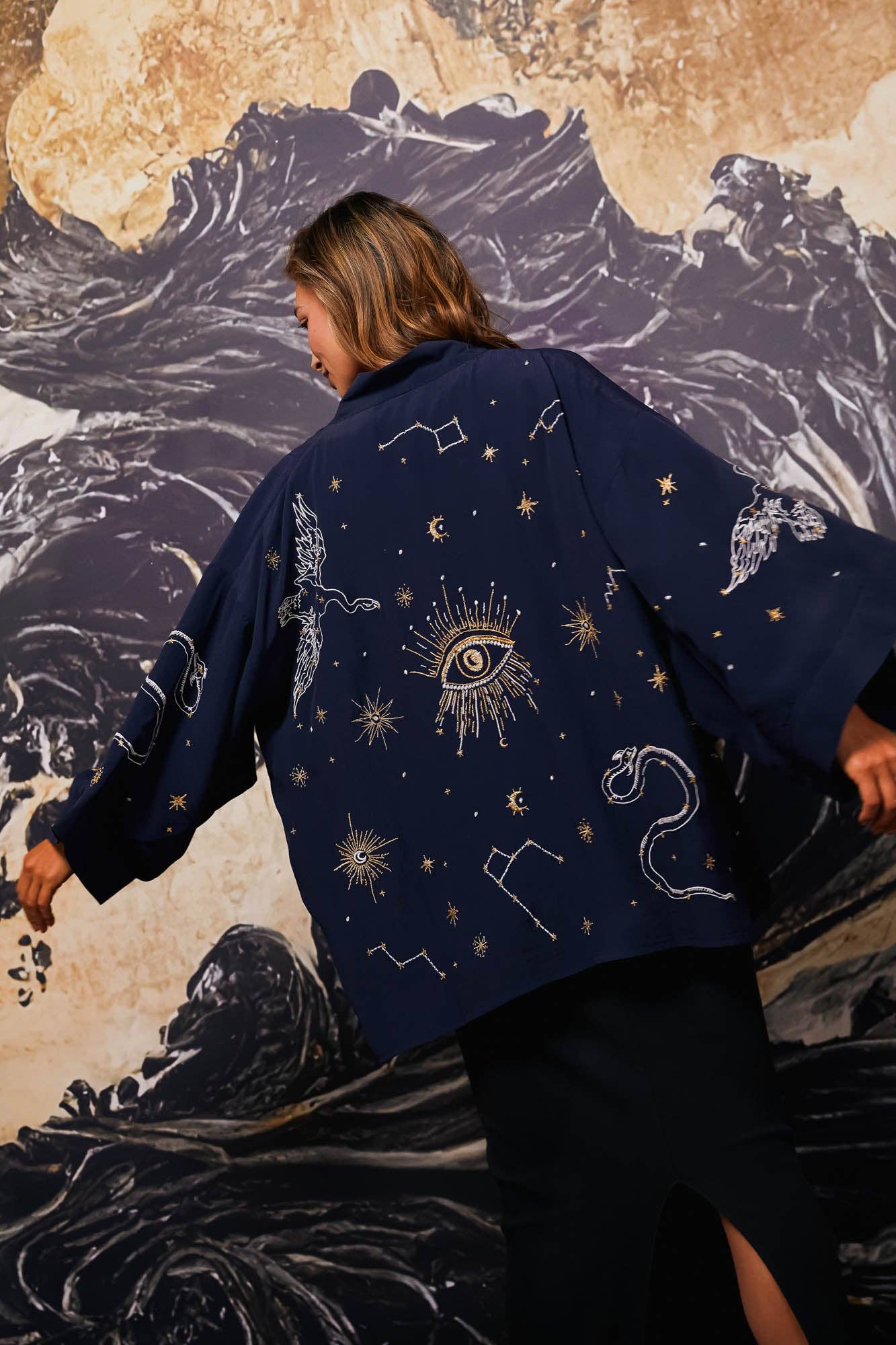 Deity Print Long Bell Sleeves Kimono (KT-1348)
