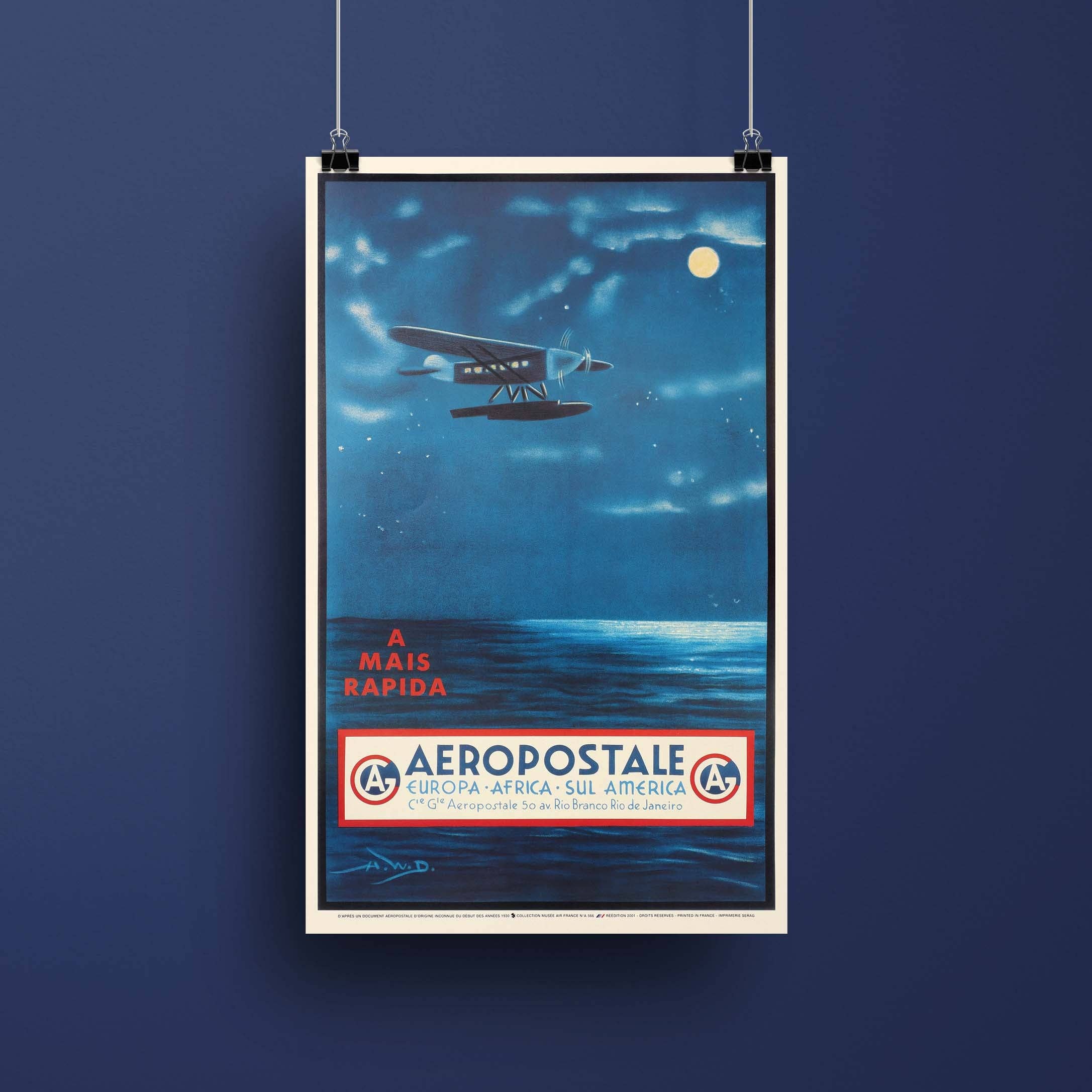 Created by Lucien Boucher in 1950, this artistic poster symbolizes the air link between Air France and South America. This official poster is published under license © Air France Legend * It is a reissue of an advertising poster from the company, taken from the Air France historical heritage collections * Each poster has a dry stamp at the bottom right attesting to its authenticity * © Air France Legend, Art Editions - printed in France by oneart-editions * Art edition poster printed on 200g Hahnemühle matte paper * Available in 2 sizes: 30x40cm and 50x70cm * Made in France: our posters are artisanally printed in our workshop in Fontainebleau * To limit stock, each poster is printed on demand
