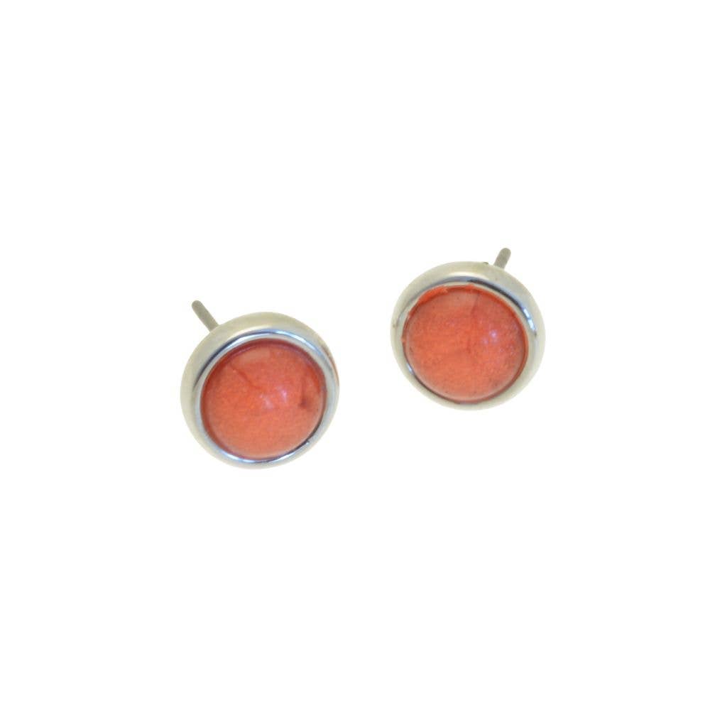 These stylish earrings are created with ellipses of mid blue resin, handpainted turquoise and shiny silver sitting within a circle of approximately 2cm diameter. The earrings are held in place with posts and silicon stoppers.
