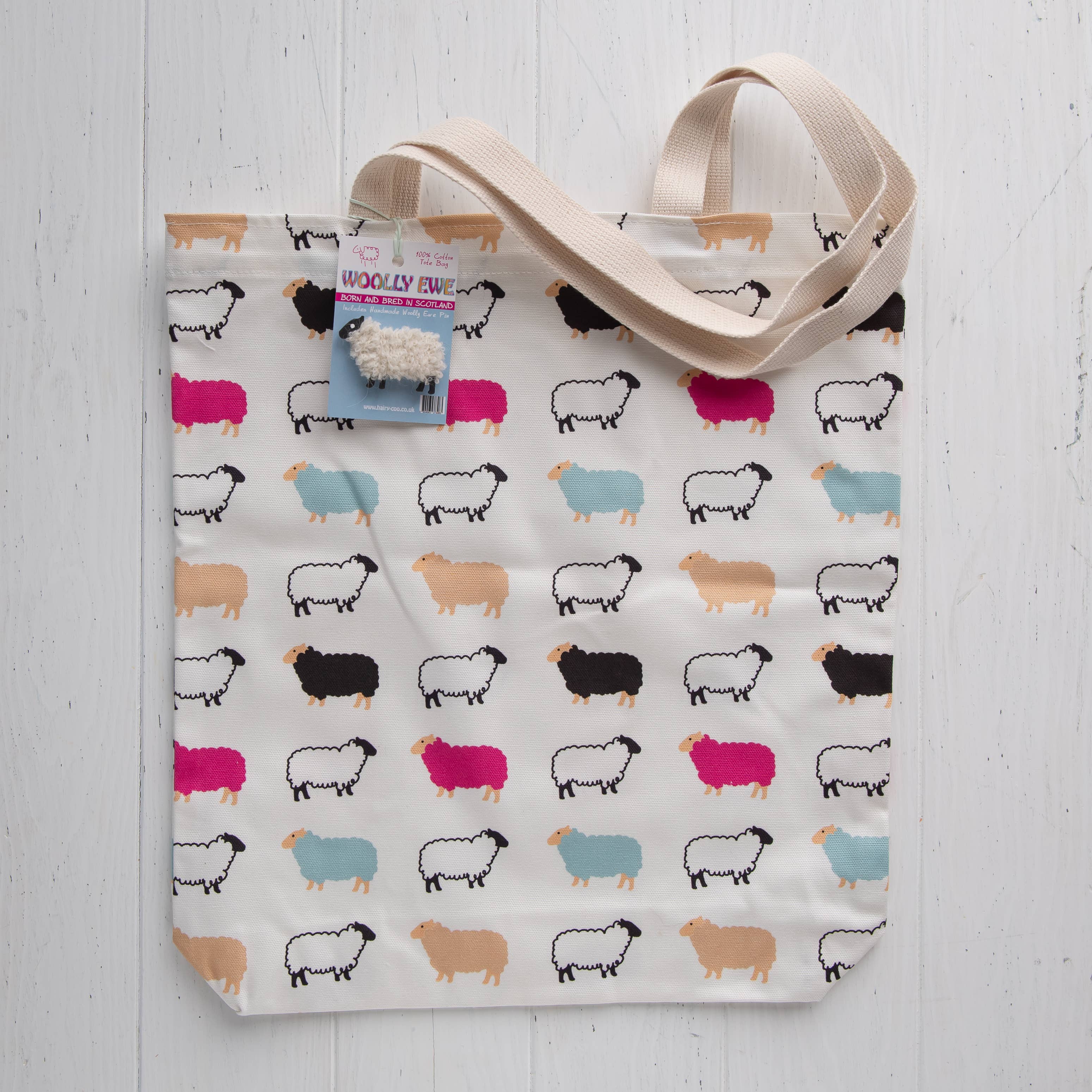 Colourful sheep design tea towel with handmade sheep magnet included. 100% cotton and made in UK