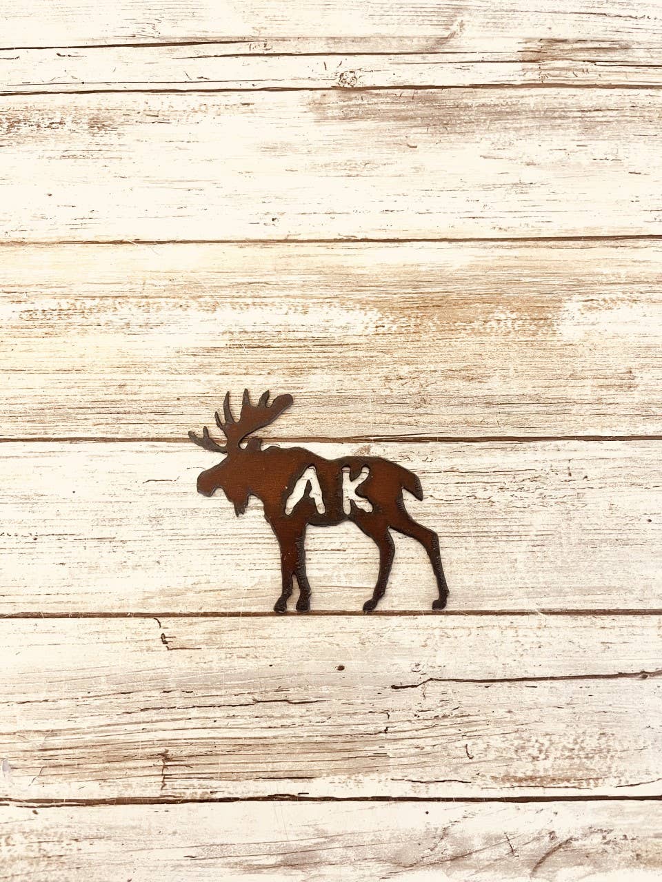 Moose Ornament with AK cutout For Alaska Rustic Metal Home