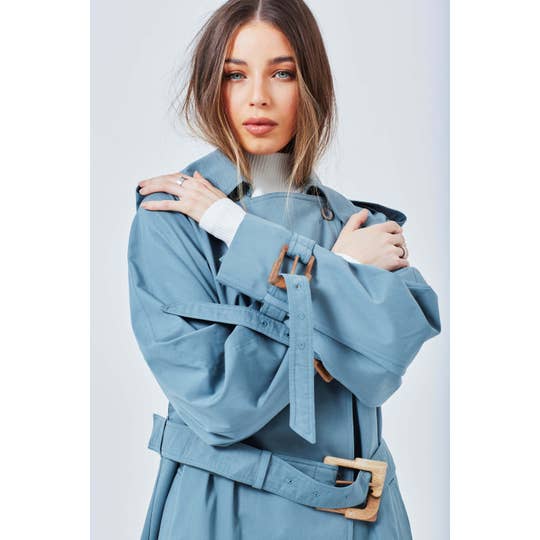 The Charlène cropped trench coat has a classic and timeless cut. Its slightly transparent new-tech fabric will let the main lines of my top filter... Innuendo guaranteed! - 2 patch pockets - Double breasted - Belt on the waist MAIN FABRIC: 100% POLYESTER