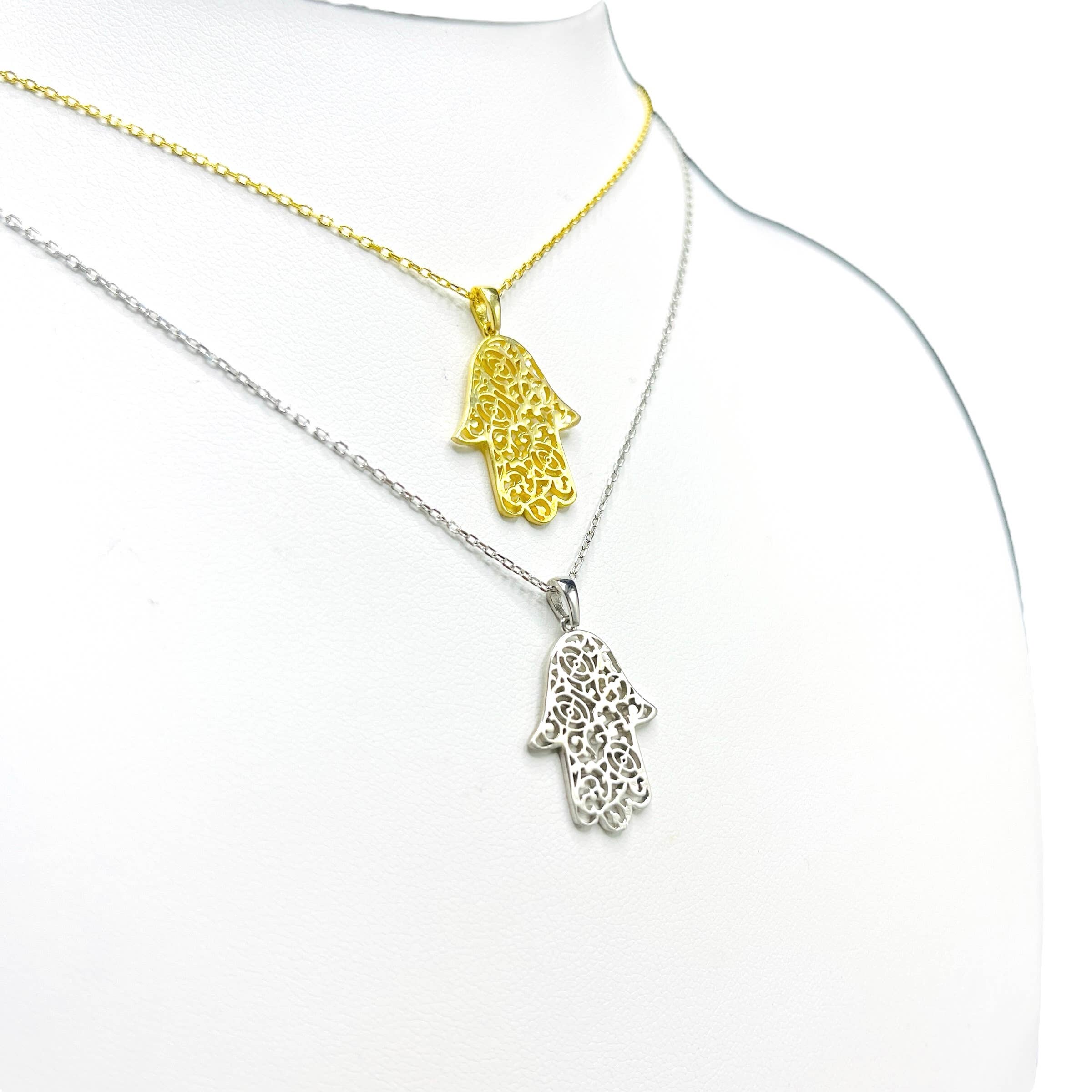 925 Sterling Silver Dainty Hamsa Evil Eye Necklace