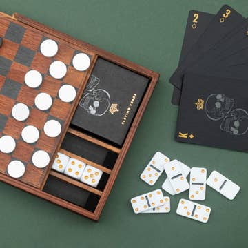 Chess is a timeless classic that is still enjoyed by many all over the world. This traditional game of skill and strategy is presented in a stylish and sturdy box and will make the perfect gift for any board game lover. Includes - bi-fold playing board, 16 white wooden playing pieces, 16 black wooden playing pieces and instructions. Dimensions: 305 x 160mm