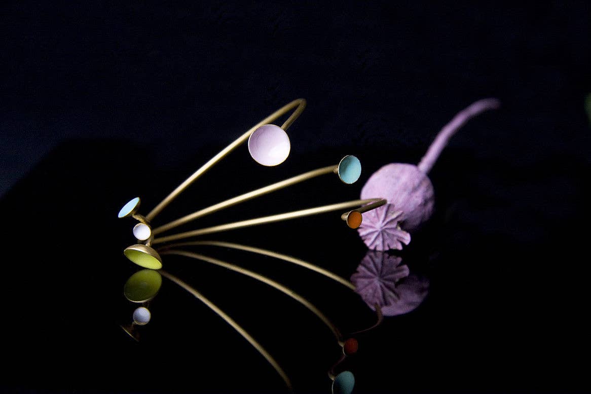 Earrings S organic shape. Stick and pressure system. 24k gold-plated copper alloy and hypoallergenic plating. Cold enamels Size 1 x 1 cm Organic shape small earrings, hand enamel. Copper alloy, 24 carat gold plated and hypoallergenic cover.