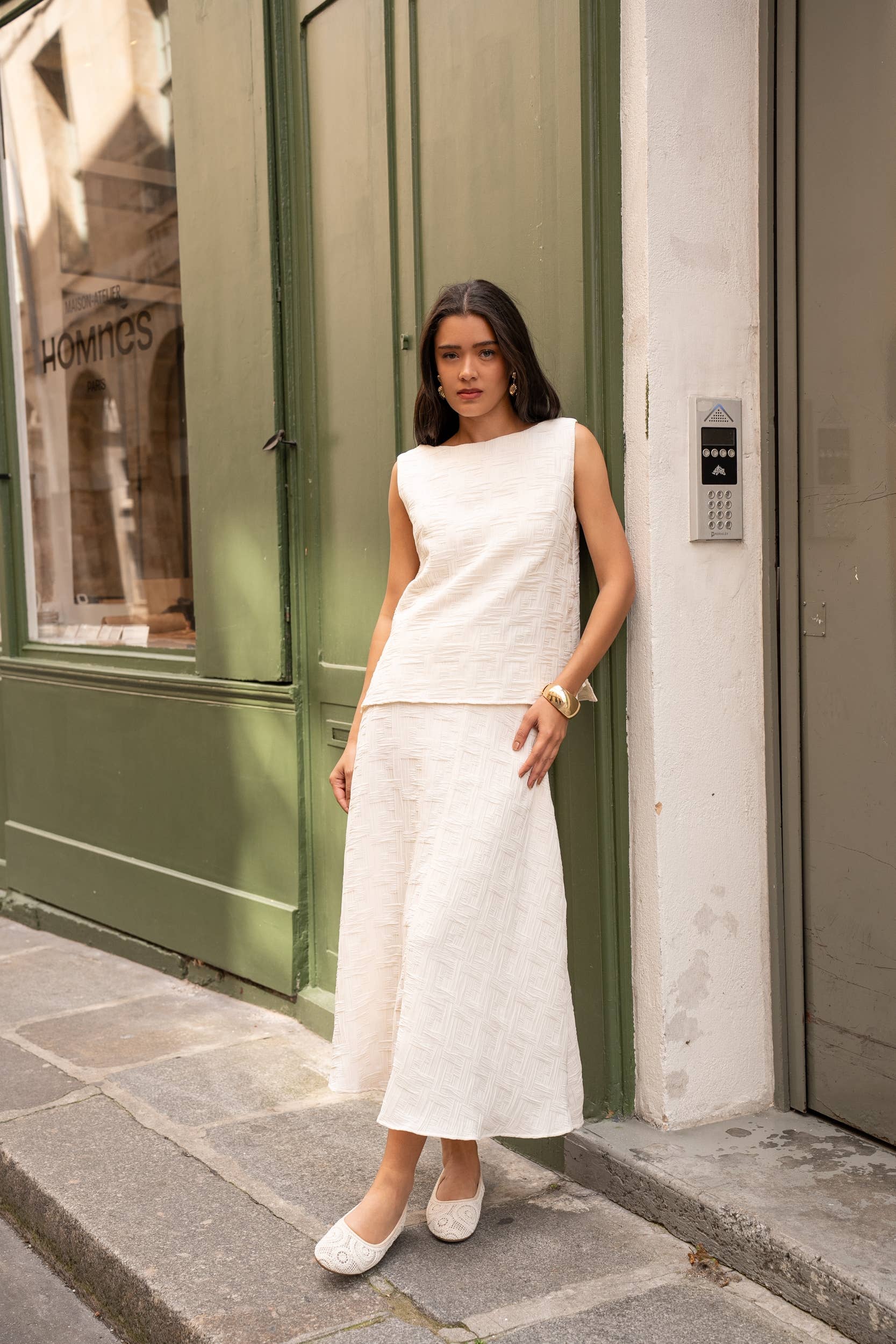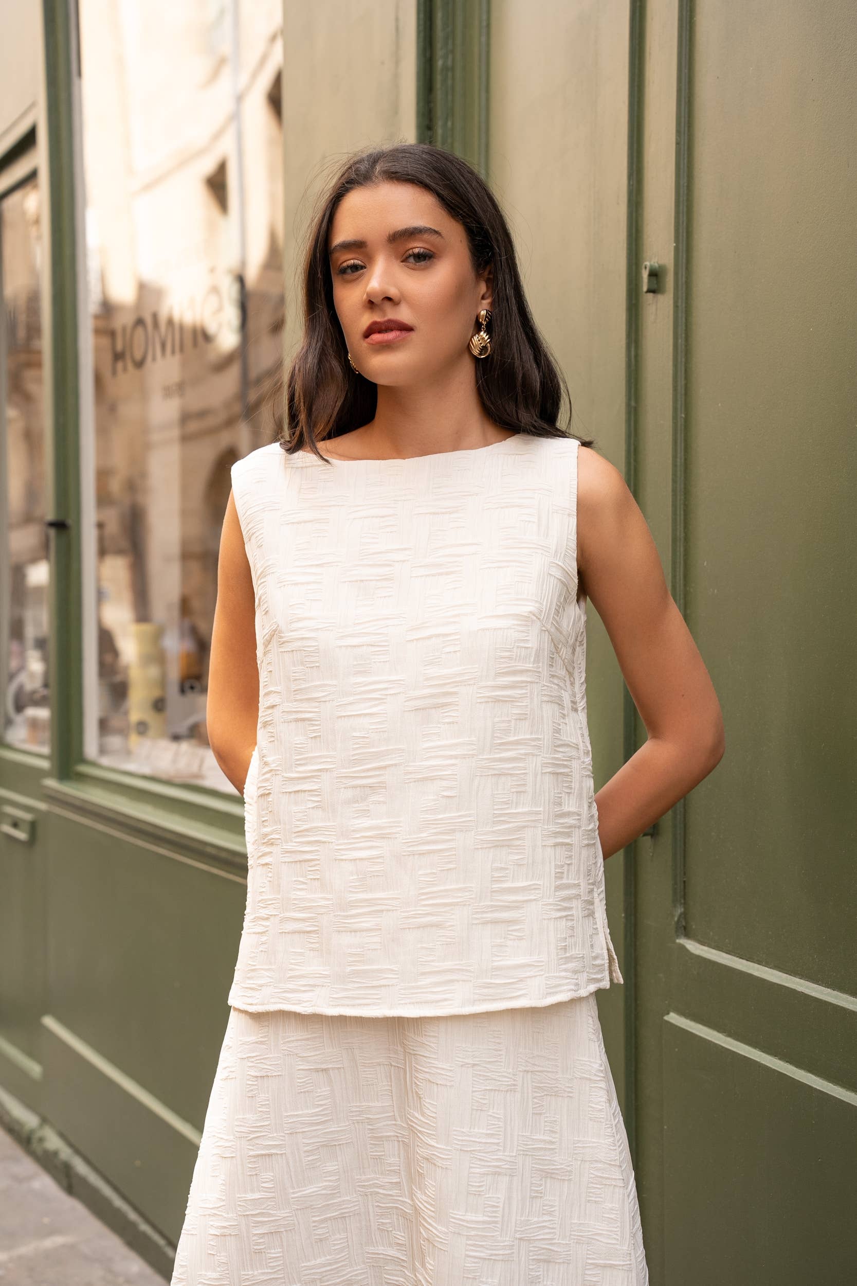 Main material: Structured jacquard, embroidered floral pattern in relief A-line cut, slightly flared Length: 88cm Round neckline Sleeves: Short with gathered shoulders Closure: Invisible back zipper Fully lined for added comfort Feminine and sophisticated, this floral jacquard dress is a must-have for your elegant occasions. Its slightly flared structured cut flatters all silhouettes, while the short sleeves with gathered shoulders add a subtly retro touch. Ideal for a ceremony, cocktail, or chic event, it stands alone with a simple pair of pumps or sandals. Care instructions: Dry clean or gentle hand wash recommended