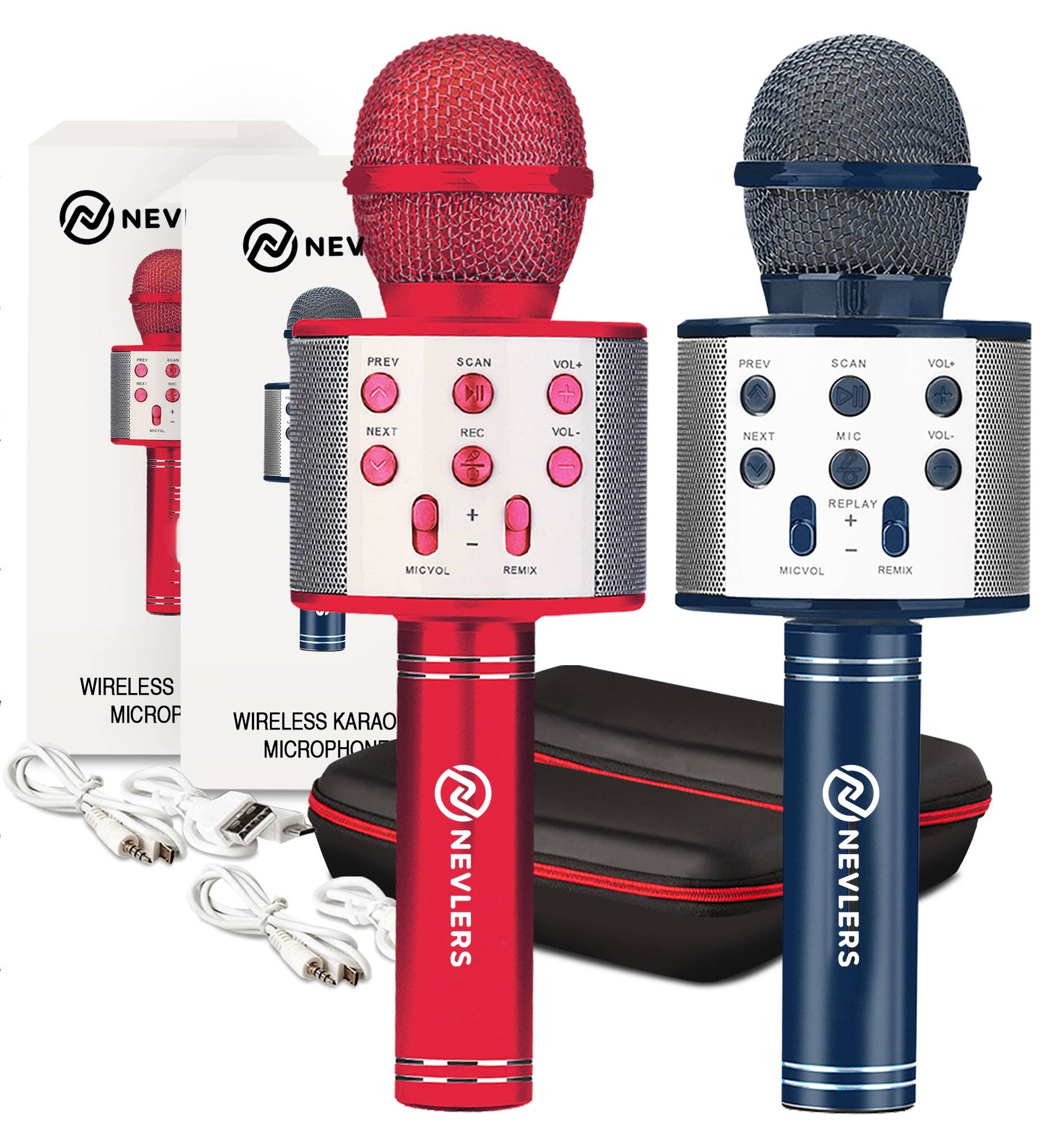 DESCRIPTION As the saying goes, no one is ever too young or too old for Karaoke! Whether it’s for a night of singing fun with friends, showing off those vocal skills at the next family get-together, or the awesomeness of kids discovering their singing voices for the first time, you just can’t go wrong with Bluetooth karaoke microphones! DETAILS & SPECIFICATIONS Nevlerswireless karaoke microphones are Bluetooth enabled and have their own built in speakers. Nevlershandheld karaoke microphones come with a Micro USB Cable and an Audio Recording Cable. Connectivity options include USB, Aux, TF Card, and Headphones. NevlersKaraoke Mic Controls * Skip to previous/next song * Play/Pause * Record * Volume Up/Down * Remix * Scan FM radio Specifications * Material: Aluminum Alloy * Pickup: Capacitor * Output Wattage: 5W * Frequency Response Range: 100Hz ~ 10KHz * Sound Pressure Level >115dB 1KHz THD<1% * Reverberation: Echo Sound * Bluetooth Version: Bluetooth 4.