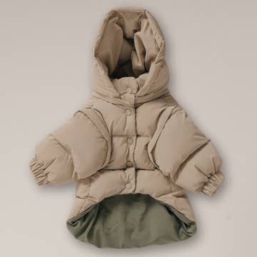 Features * Waterproof shell * Zipper Harness hole * Machine washable * Extra coverage around the body * Adjustable string for a customizable silhouette Size Guide * XS: Back 8", Chest 11 - 13" (5 - 6 LBS) * S: Back 10", Chest 13 - 15" (6 - 8 LBS) * M: Back 11.25", Chest 15 - 18" ( 8 - 14 LBS) * L: Back 13", Chest 18 - 22" (14 -22 LBS) * XL: Back 15", Chest 22 - 26" (22 - 30LBS) * XXL: Back 18.5", Chest 28 - 33" * XXXL: Back 22", Chest 33 - 37" Materials * Outer Fabric: waterproof fabric * Filler: Faux Down (polyester)