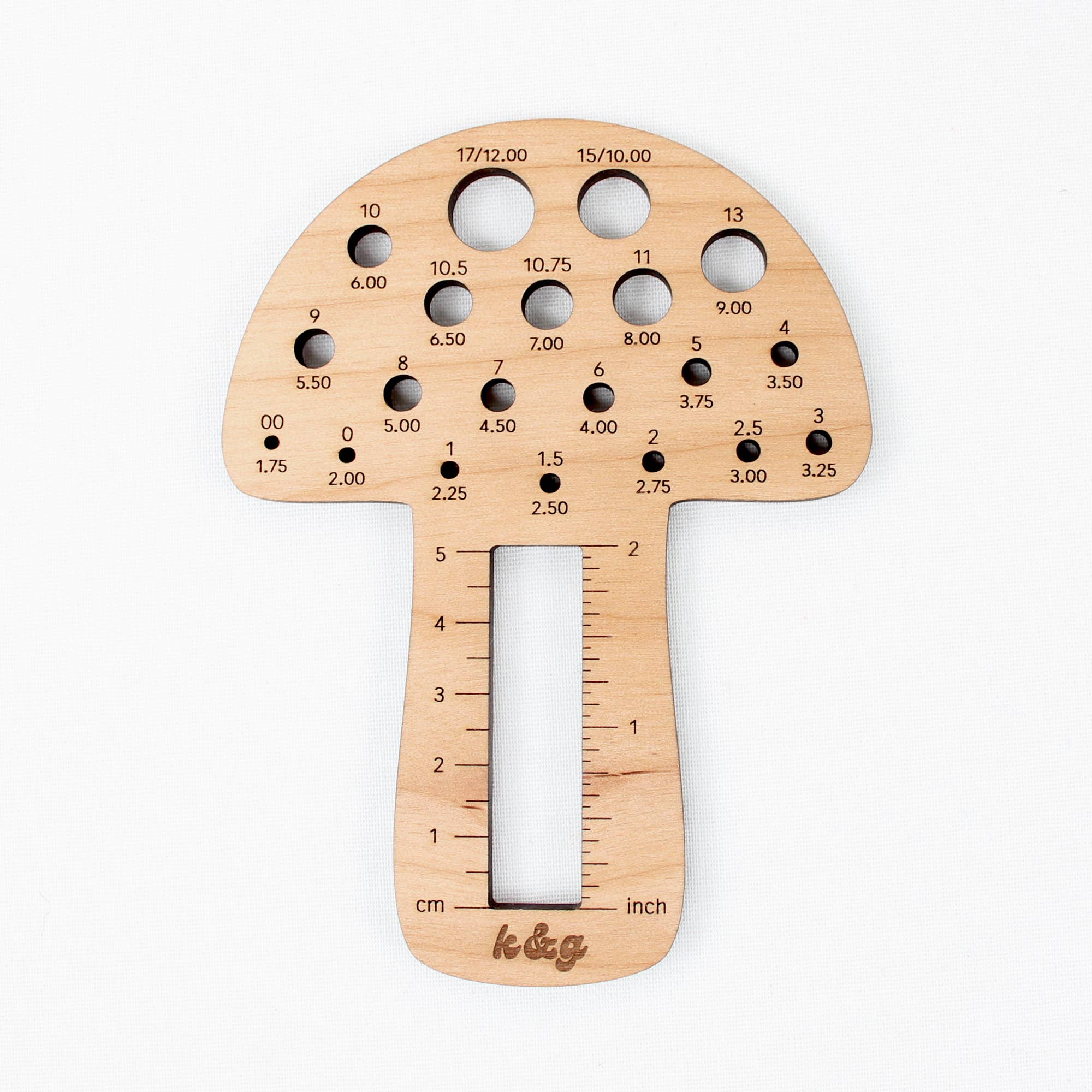 Mushroom Knitting Needle Gauge Tool