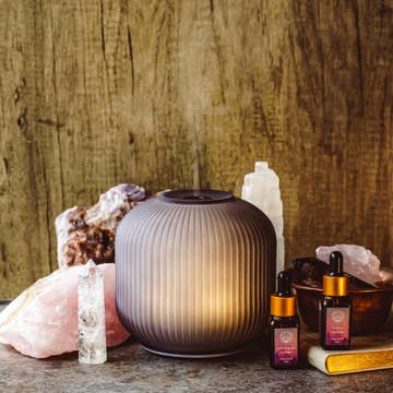 Crafted from sustainably sourced wood and hand blow glass, the Fountain Ultrasonic Diffuser is a unique, stylish way to bring the benefits of essential oils into your home or workplace. The handblown glass top is a visual masterpiece which serenely glows with color and mist during the diffusion process. Why You'll Love It: • Easy to use just fill with water and your favorite essential oil or fragrance and its ready to go. No complicated settings. • The colored rotating lights creates a serene ambiance while it delivers the natural benefits of diffusing essential oils. • Luxurious this piece is a centerpiece of attention. • Soothing sound of water droplets Coverage: Up to 400 square feet Run time: Up to 6 hrs on Mist modes: Continuous, off Light modes: Warm white, rotating colors, fixed and off Water capacity: 100ml Power: 100-240V AC Auto Shut - Off 1 Year Limited Warranty 888-548-0040 - customer service phone number