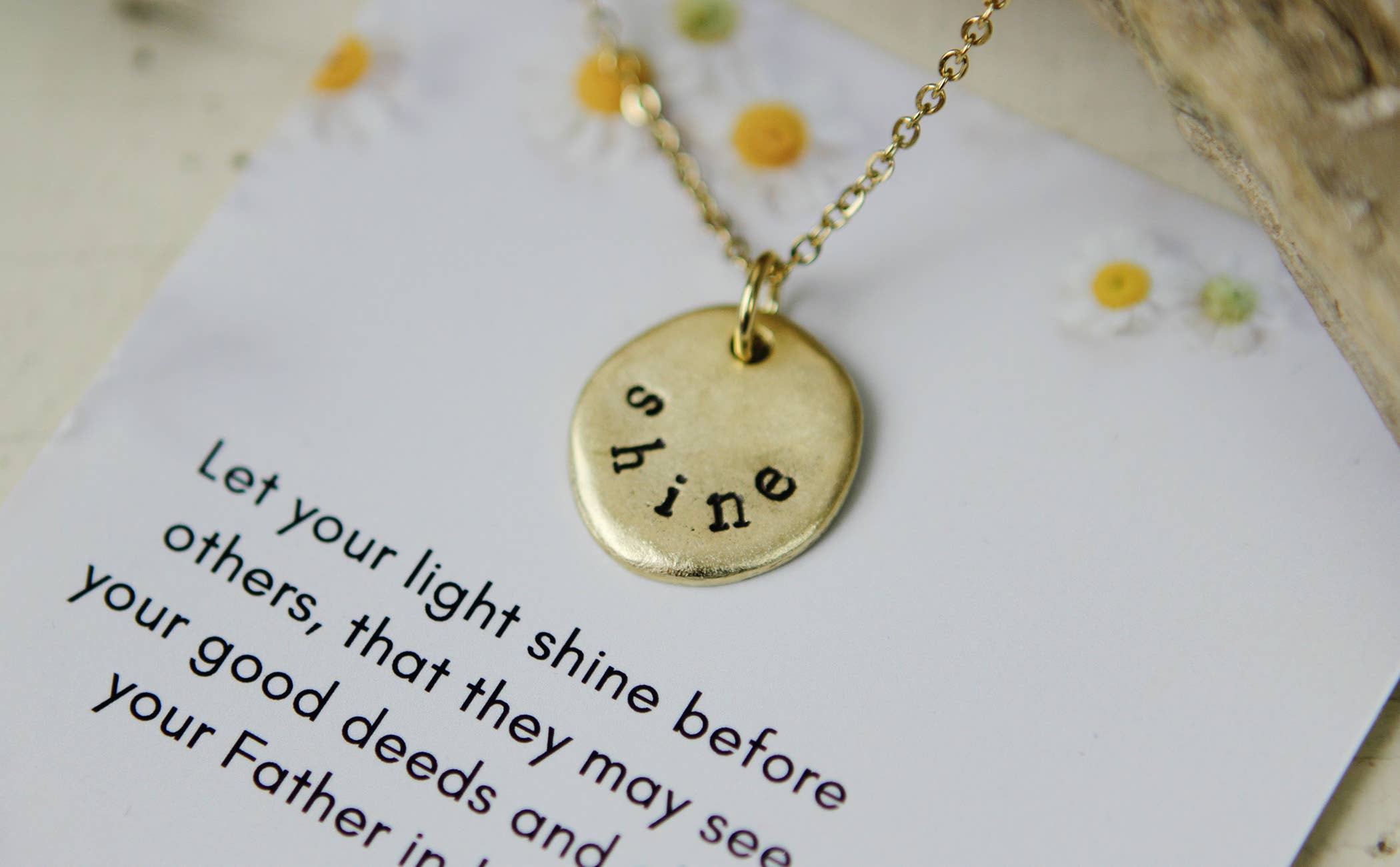 Part of our Simple Grace Collection, this sweet necklace is a reminder of scripture that your customers can keep close to their heart. Choose from silver or gold. The necklace comes packaged with the scripture verse. Dimensions: 5/8" round charm, 18" stainless steel chain Materials: lead-free pewter 24k gold or .999 silver