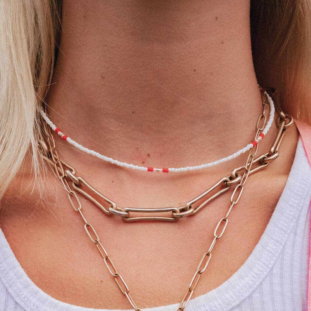 Necklace to End War. This beautiful amber necklace is carefully crafted by hand using amber mined from the Sierra Madre Mountains by local men and women. Each necklace partners with the local community to create jobs, food, and education in Southern Mexico. Every necklace provides relief and jobs for families fleeing violence around the world. DESCRIPTION Each necklace is handmade. Due to the unique nature of amber, no two necklaces are alike. Color, pattern, and shape variations should be expected. * Amber * Chain: Gold Finish, 16K gold plated over brass, 17.5" * Care: Spot clean with a jewelry cloth Un collar para detener la violencia Este hermoso collar de ámbar de las montañas de la Sierra Madre es cuidadosamente hecho a mano por hombres y mujeres locales. Cada collar comprado apoya a que la comunidad local pueda crear empleos, proporcionar comida y educación en el sur de México. Cada collar proporciona alivio y empleo a las familias que huyen de la violencia en todo el mundo. Descripción Cada collar está hecho a mano. Debido a la naturaleza del ámbar, no hay dos collares iguales. Se deben esperar variaciones de color, patrón y forma. * Ámbar * Cadena: acabado en oro, chapado en oro de 16 K sobre latón, 17,5 " * Instrucciones de cuidado: Limpiar las manchas con un paño de joyería.
