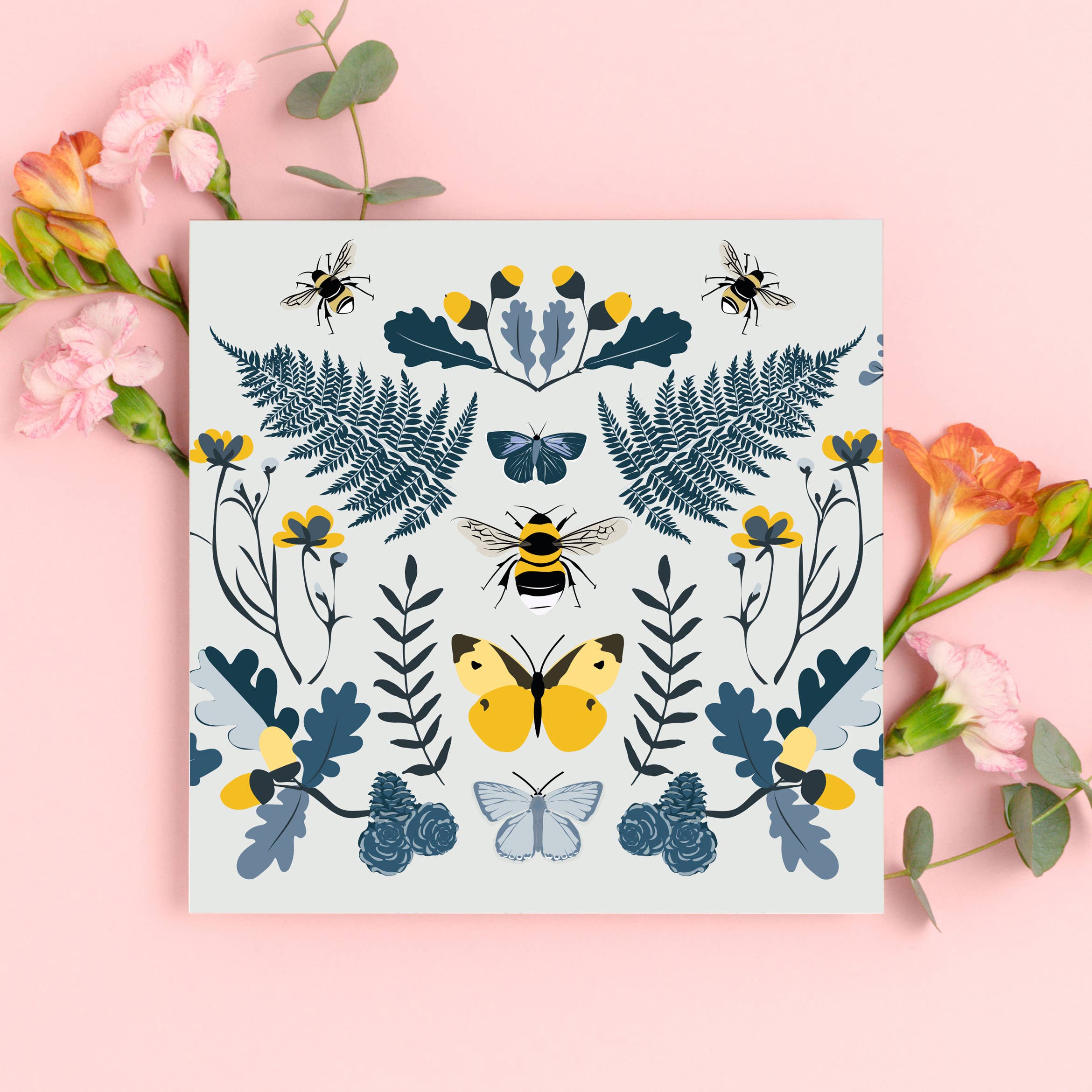 Lorna's illustration of a British woodland scene complete with native flora and fauna. This fern illustration card is part of the best selling Watlington woodland collection which involves greeting cards and wrapping papers Blank inside for you to write your own message. This card can be used for many occasions such as birthdays, anniversaries and more Our cards on printed in the UK on high quality FSC card using recycled paper envelopes. We can send the order plastic free, or they come with biodegradable potato starch cellos as standard.