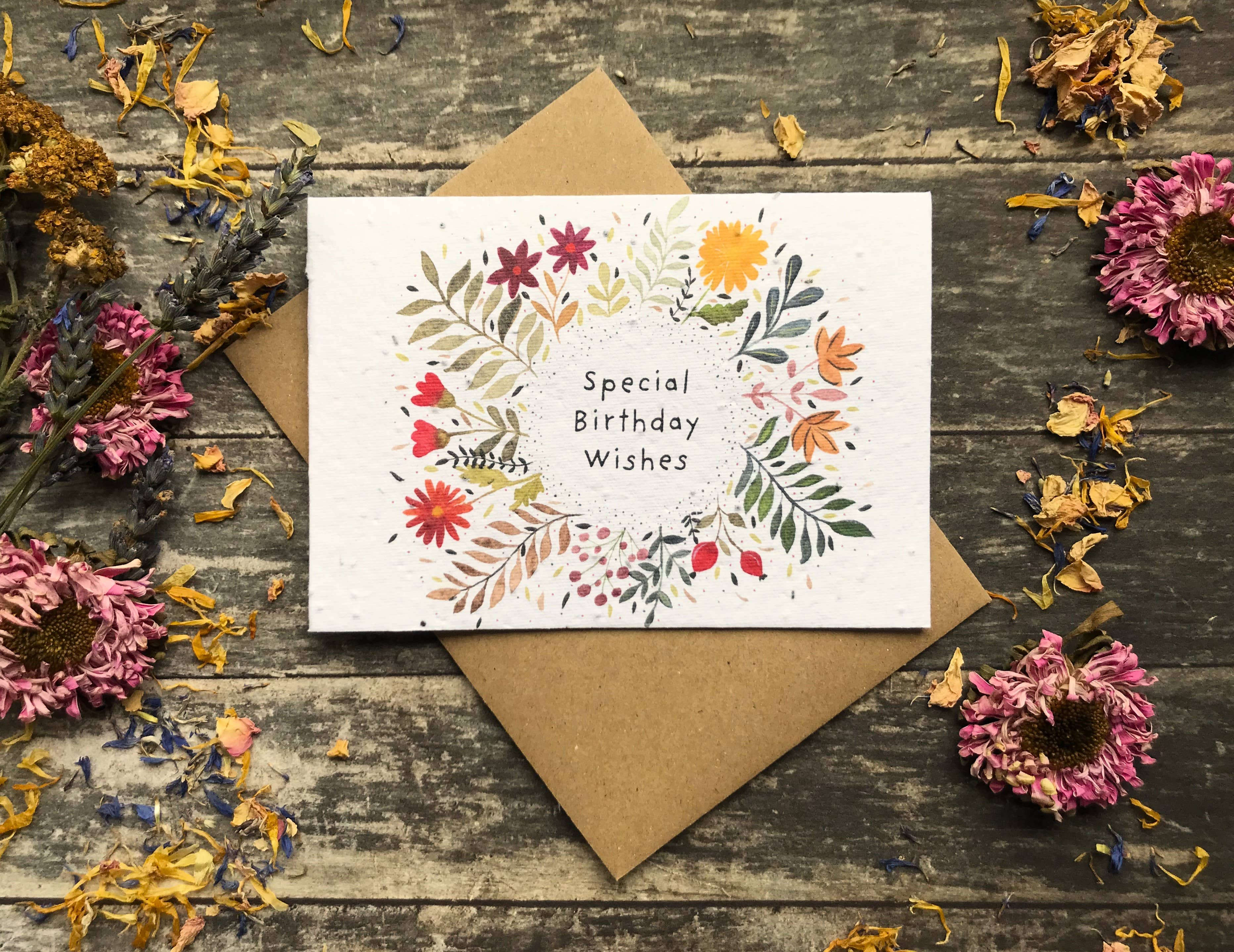 Plantable Seed Paper Valentines/Birthday/ With love Card, Blank Inside, Flower Illustration The greeting card that keeps on giving. These blooming marvellous Eco-friendly cards are plantable and transform into beautiful flowers. Our seed paper is tree-free! Made of 100% Pre-Consumer Recycled Cotton that degrades naturally in the soil. Simple planting instructions are printed on the back of the card. Details: * It is a thick recycled paper (about 150 gsm) embedded with various flower seeds. Seeds include Sweet Alyssum, Poppy, Baby’s Breath & Rudbeckia. These are non-invasive species that are commonly found in garden shops and can be grown in pots and left outside for bees and other pollinators. * Printed using an Inkjet Printer * Comes with an A6 size 100% recycled envelope in natural colour.