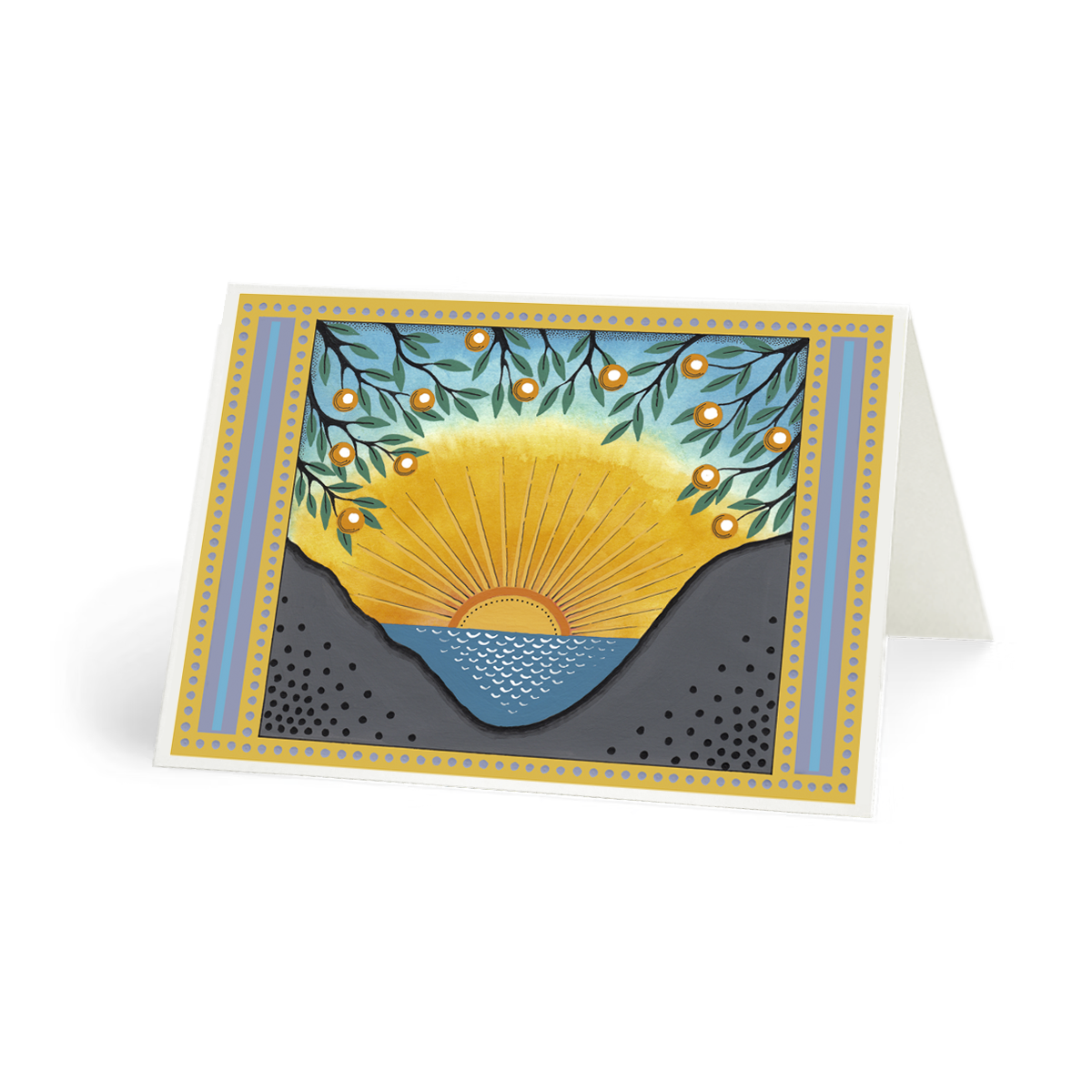 This is a design for a large scale bespoke wall-hanging I hand painted. Now a colourful card, it helps you to express your joy and delight on any celebratory occasion, whether for a birthday, a new home, or a new baby. - Supplied with a white envelope - Size: 17.8 x 12.7 cm (7 x 5 in) - Blank inside - 300gsm FSC certified semi-gloss luxury card stock - Packaged in cellophane - Watermark © Cressida Bell is not part of this design