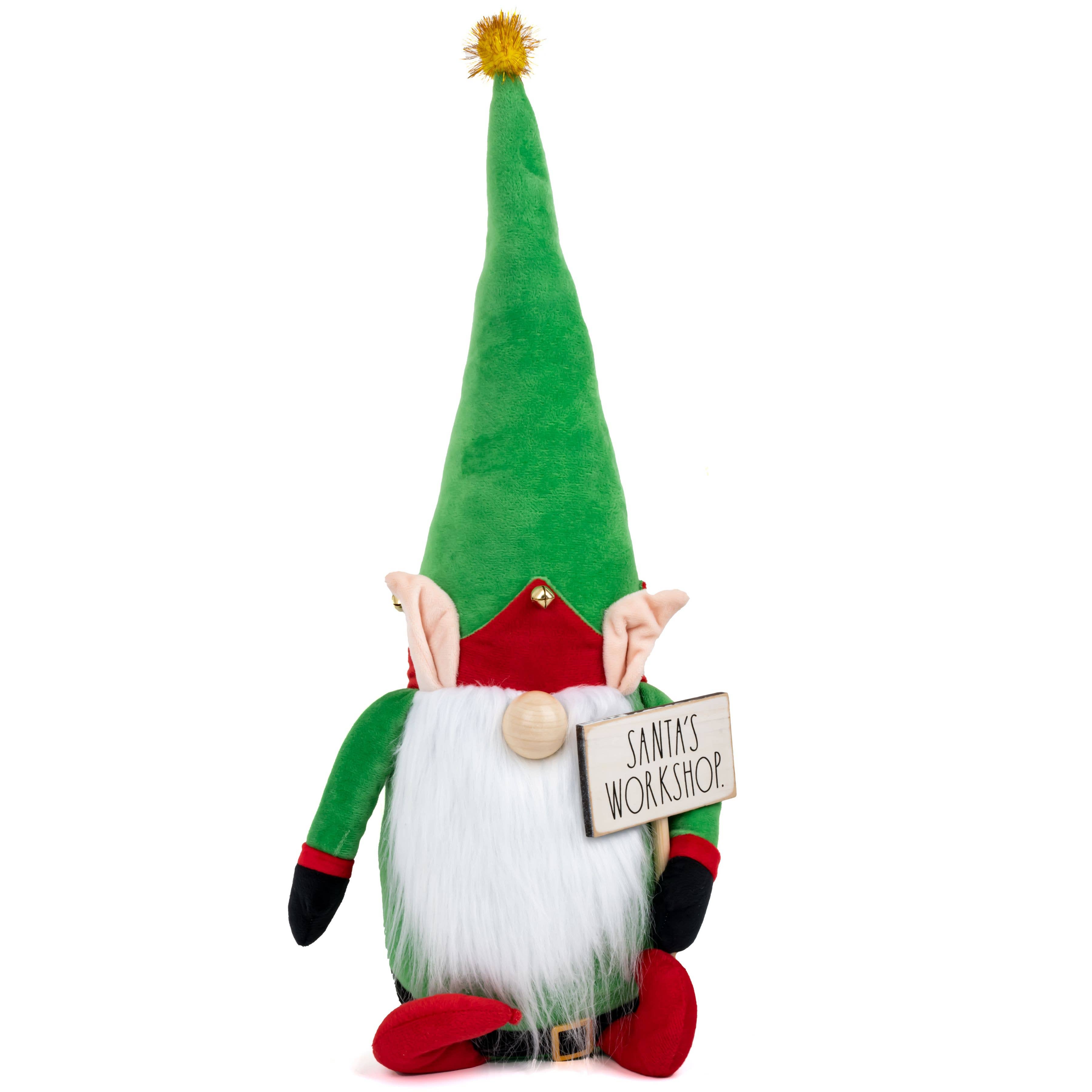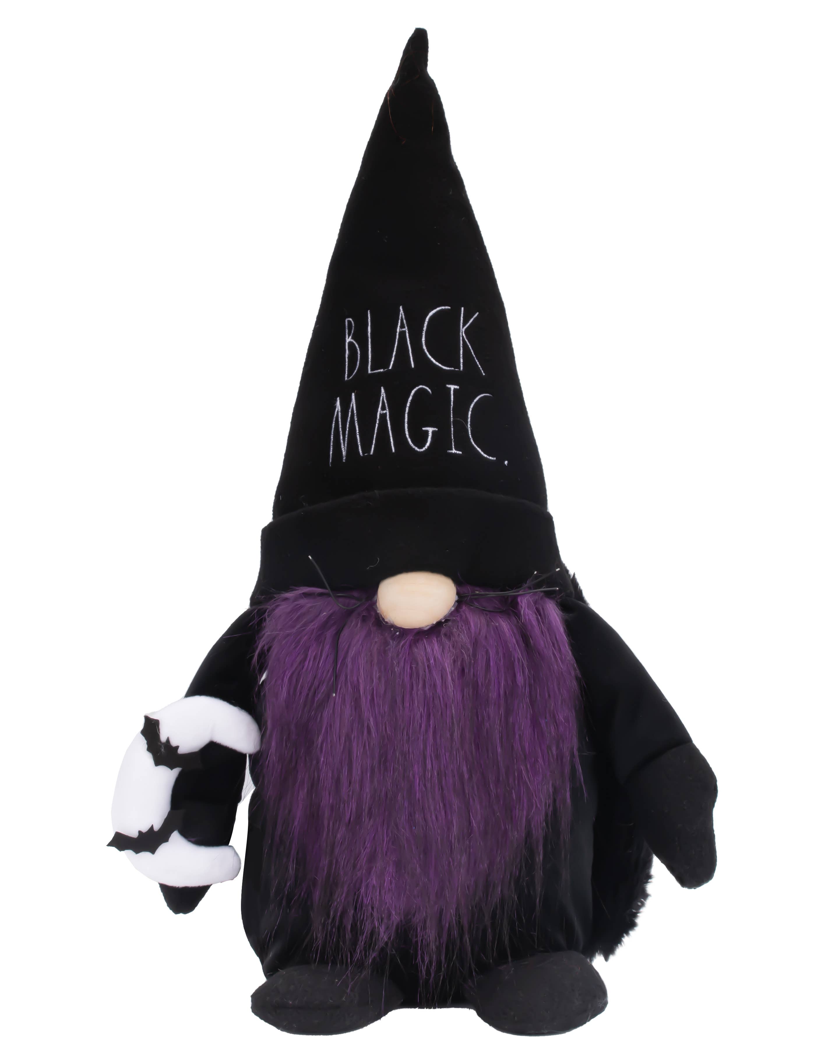 Add a playful seasonal accent to fall displays with this plush Halloween gnome by Rae Dunn. Dressed in black with a tall pointed hat featuring a jack-o’-lantern face, this festive figure is finished with an orange beard and matching shoes. It holds a small banner that spells “Boo”, making it a fun and versatile boo decoration for shelves, entryways, or tabletop setups. • Soft plush design with bold orange and black details brings warmth and personality to seasonal décor. • Rae Dunn’s recognizable style appeals to collectors and customers looking for trendy holiday accents. • Compact and lightweight, making it easy for retailers to display in a variety of merchandising setups. • Unique themed details – jack-o’-lantern hat and “Boo” banner – help it stand out as a distinctive Halloween piece.
