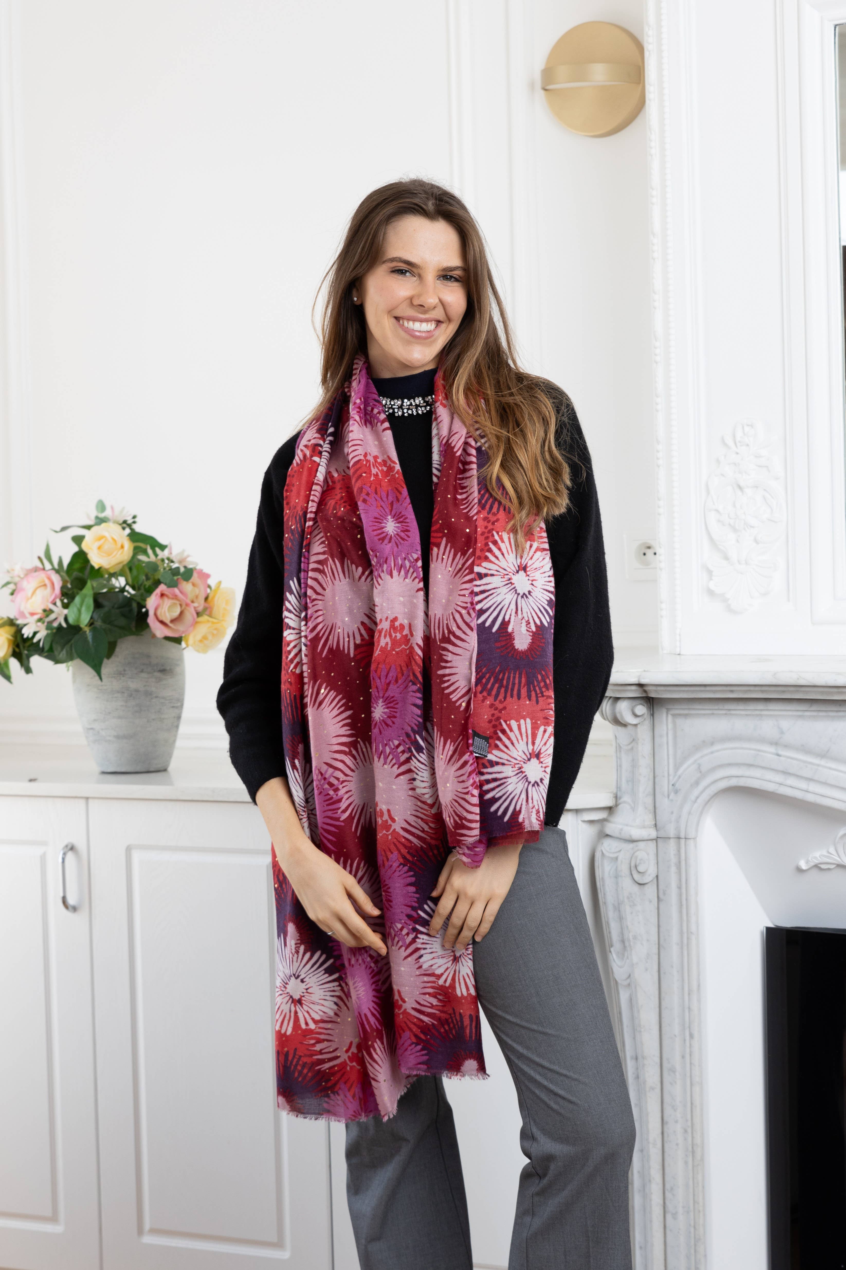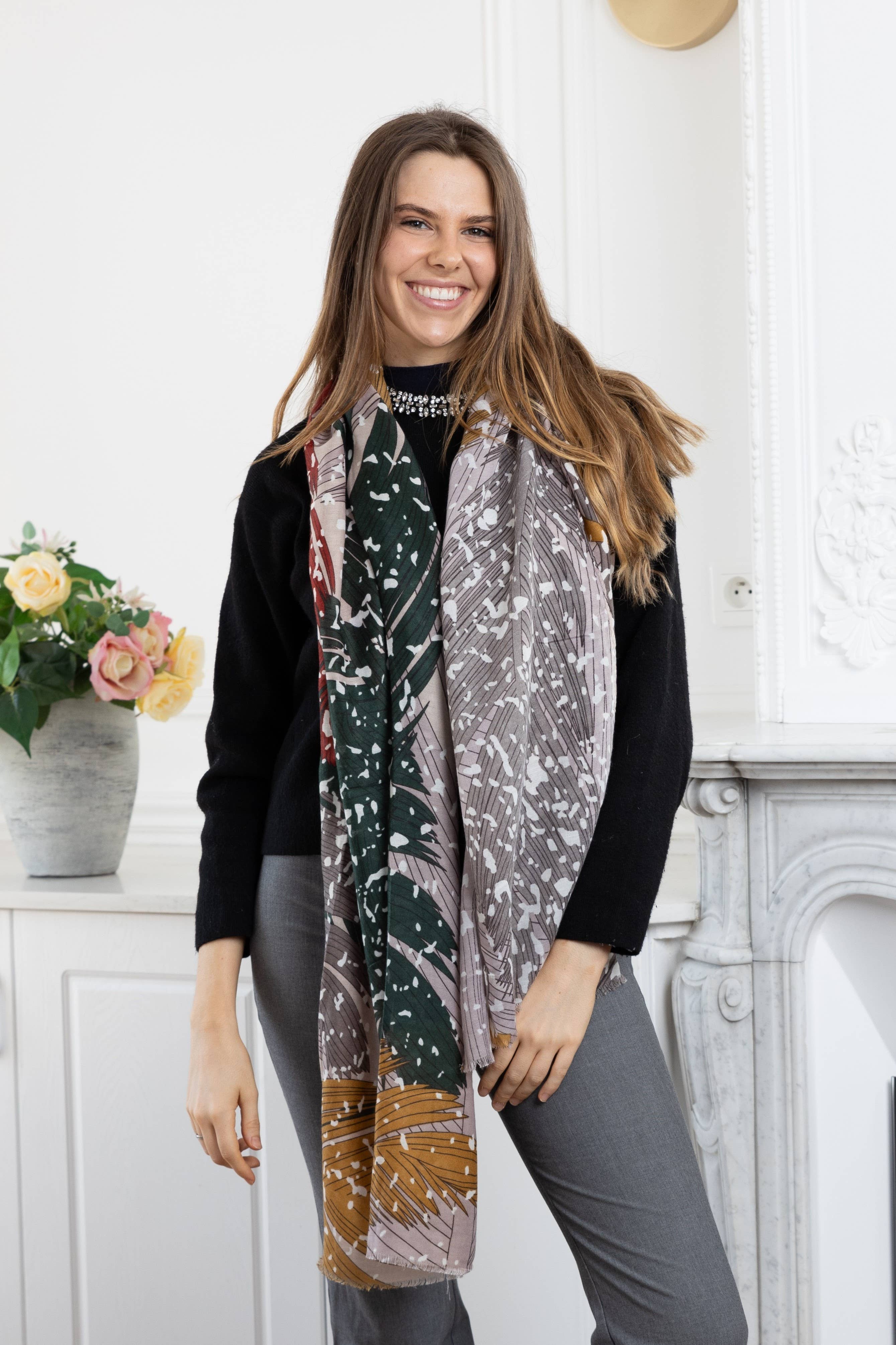 - Discover our timeless scarves made from ultra-soft material, featuring trendy and colorful patterns. Unisex model, to wear around the neck.