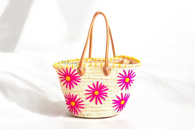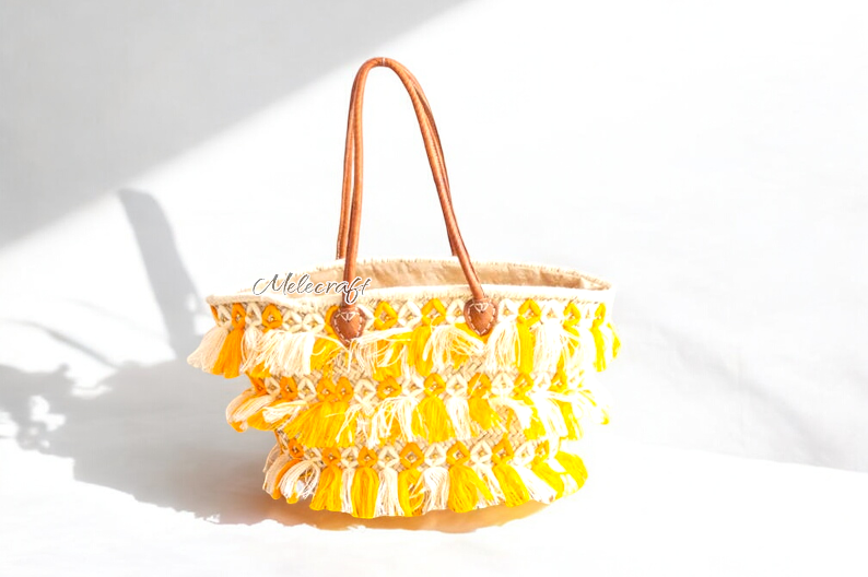 Elevate your style and sustainability with our Fringe Beach Basket, a handmade palm leaf tote intricately woven with beautiful bronze thread. Crafted by skilled artisans in Marrakesh, this eco-friendly market bag combines traditional craftsmanship with a modern flair, making it ideal for beach trips, shopping, or as a unique gift for her. A chic and practical bag for any occasion. Fringe Beach Basket – Handmade Palm Leaf Tote with Bronze Thread – Eco-Friendly Market Bag – Unique Gift for Her This versatile bag, made from natural palm leaves, features delicate fringe details for a bohemian vibe. The bronze thread adds a unique design, ensuring that each bag is one-of-a-kind. Lightweight yet sturdy, it's perfect for carrying essentials for the beach, market, or a casual outing. ✅ Details: Approximate dimensions: Length: 50 cm Height: 35 cm Handle Height: 25 cm Please note that as each basket is handmade, slight variations in size and design may occur, adding to its unique charm.