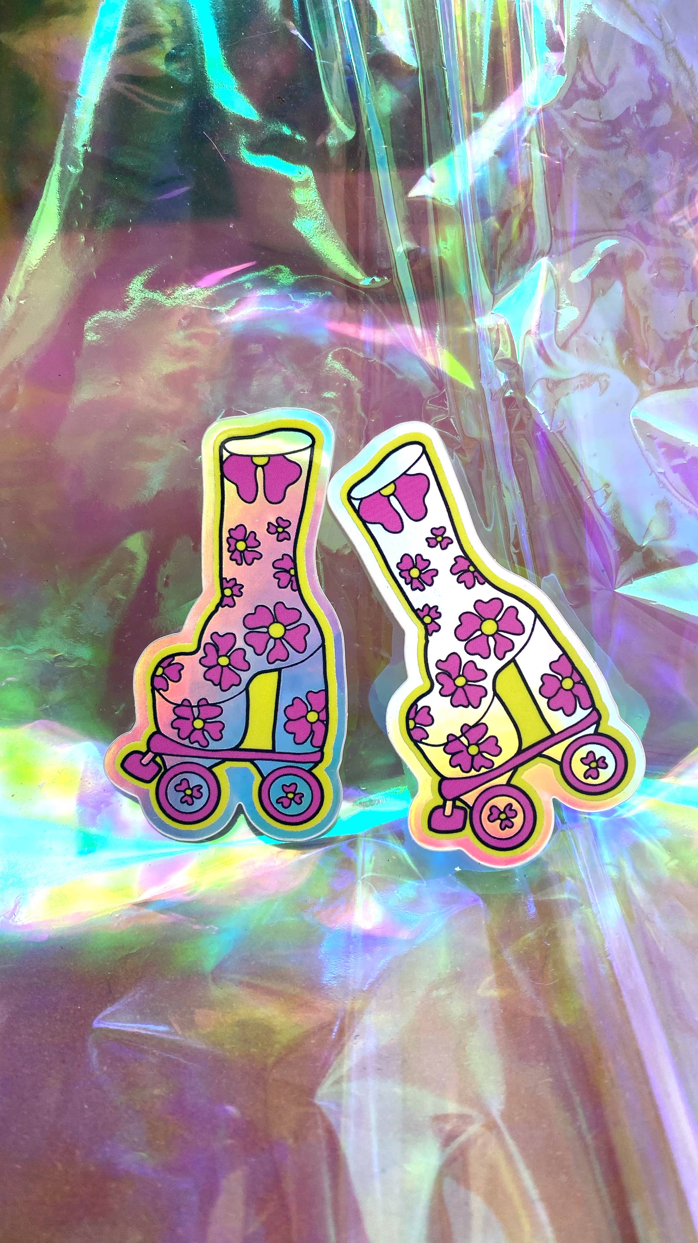 Beach bum meets skater! These fun flip flop skate stickers are perfect sticker for your water bottle, laptop, car or helmet. This sticker is made of weatherproof glitter vinyl. Height 6.3 cm x Width 4.7 cm Height 2.48 in x Width 1.85 in