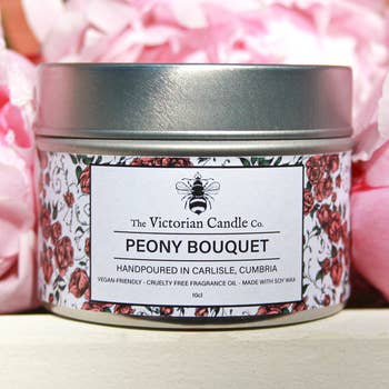 Warm their hearts and brighten their day with our Just Because Collection! This Collection of giftable tins is perfect for any occasion. Cutie features notes of pink peony, gardenia, white peach and sparkling rosé. -4 oz. soy candle in a gold tin with lid. -Burn time: 15-20 hours. -Hand-poured in small batches with soy wax, premium fragrance, and cotton wicks. -Made in the USA. -Vegan, free of phthalates and parabens, and cruelty-free.
