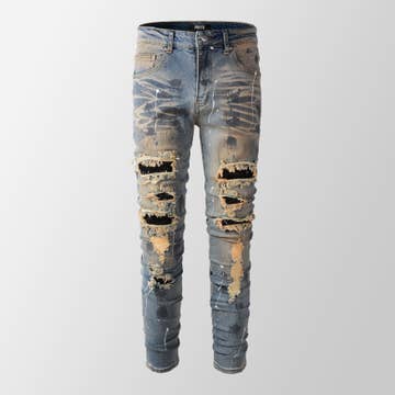 F1778 Frost Shredded Jeans W/ Paint - Light Wash