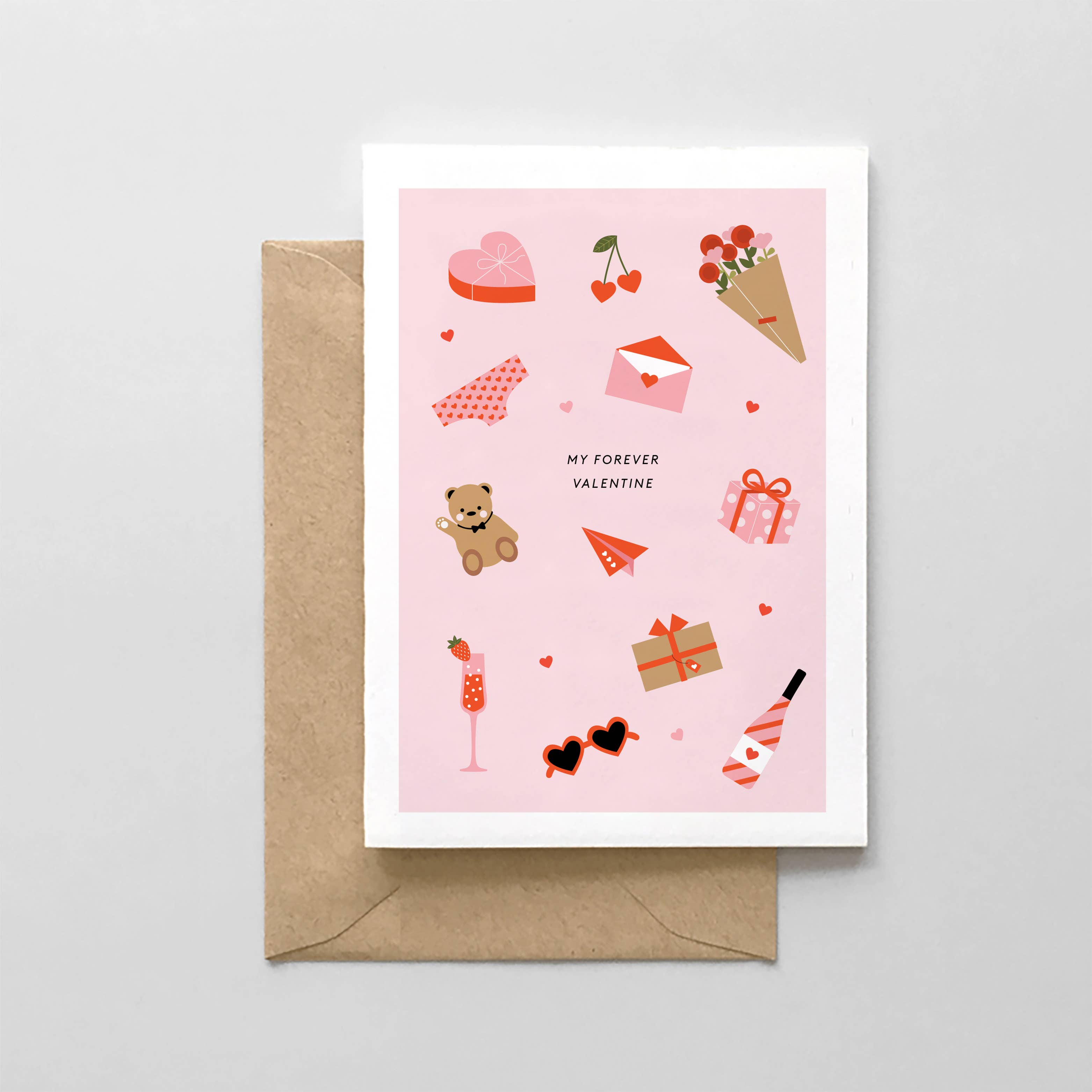 A6 Greeting Card Blank on the inside. Kraft brown envelope included. Packaged in a clear plastic sleeve. Size: 4.5" x 6.25"