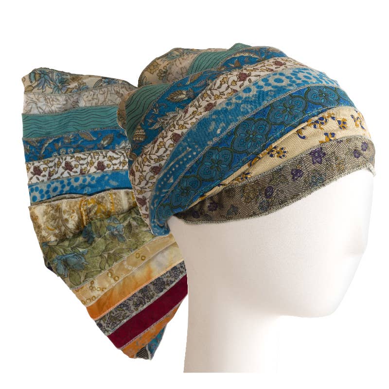 Love the re-cycled silk head covers in such pretty colors.